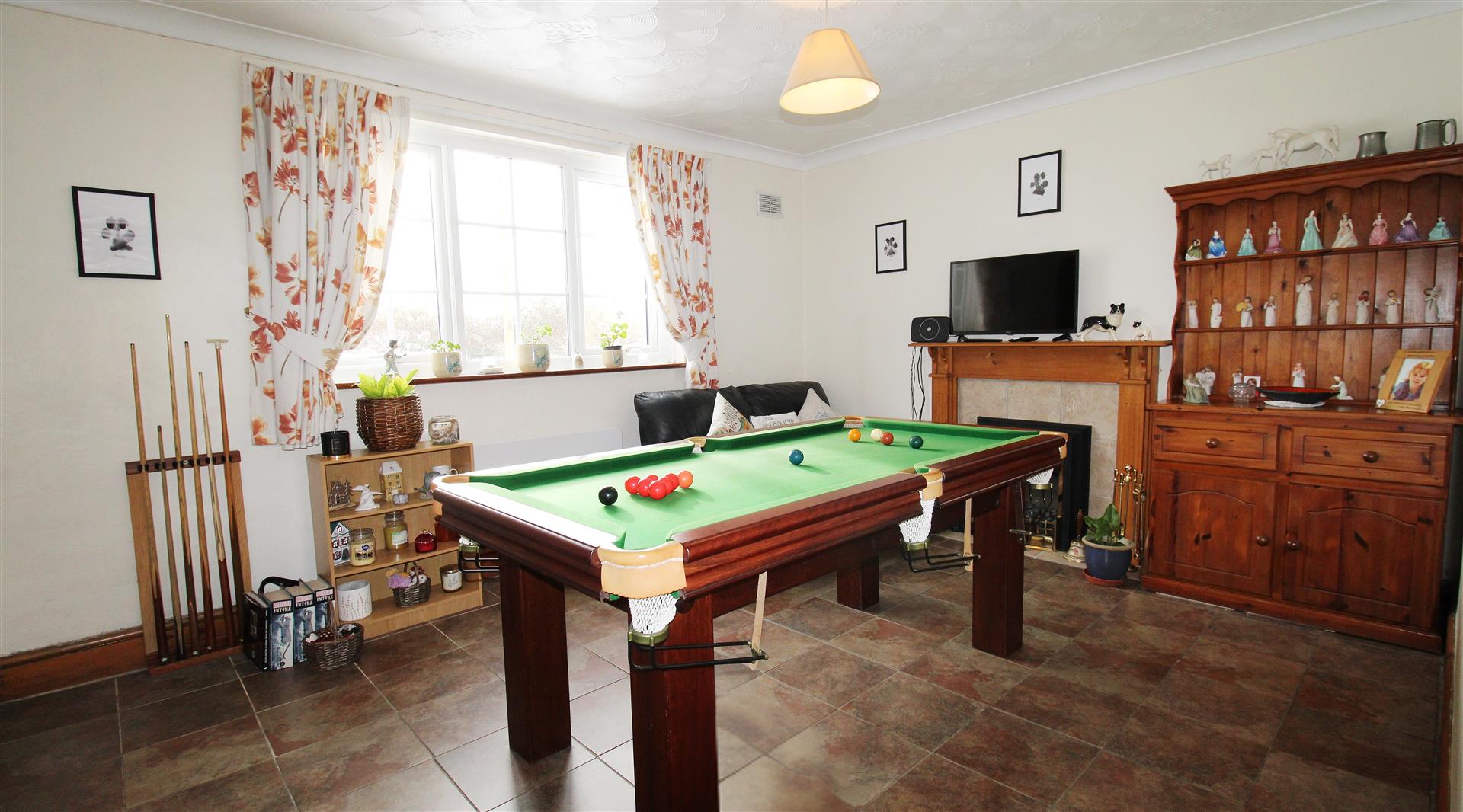 Textured and coved ceiling. 2 x uPVC double-glazed windows to side. Sliding doors to conservatory. Range of matching solid wood base units with worktop over. Tiled splashbacks. Stainless steel sink and drainer with twin taps over. Brand new 'Belling' double oven and hob. Space for under counter fridge. Log burner on marble hearth with wooden mantle (HETAS certified). Wood effect laminate floor.