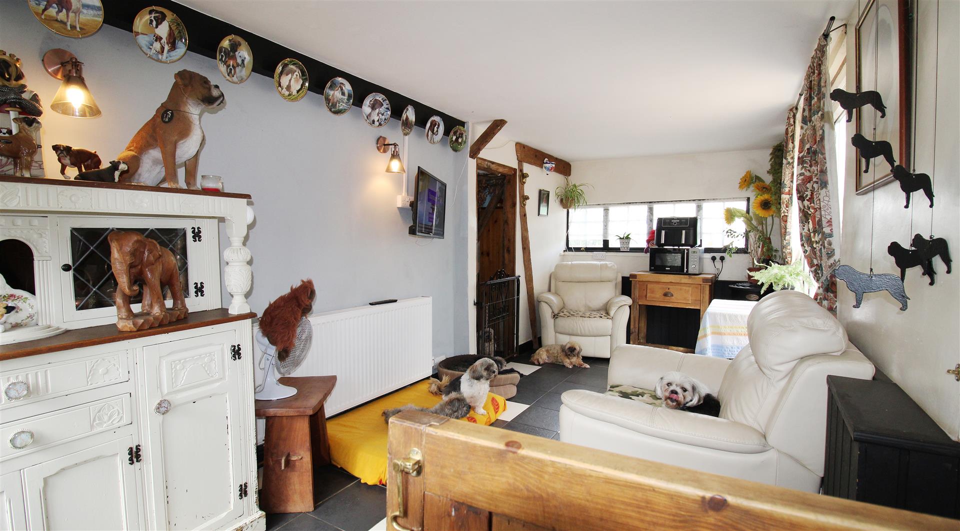A charmingly characterful 2-bedroom, timber-framed, bungalow situated on a plot of 0.5 acres (stms), in a semi-rural but not isolated location. With kennels, stables and a 2-bedroom static caravan in situ, this property would suit someone with lots of furry friends, or perhaps someone wishing to run a business (subject to permissions). The current owners have lovingly upgraded the bungalow, having it re-wired, as well as air source heating and 16 solar panels installed, so all you have to do is put your own stamp on the property should you wish. Planning Permission for a complete rebuild was previously granted but has since lapsed.