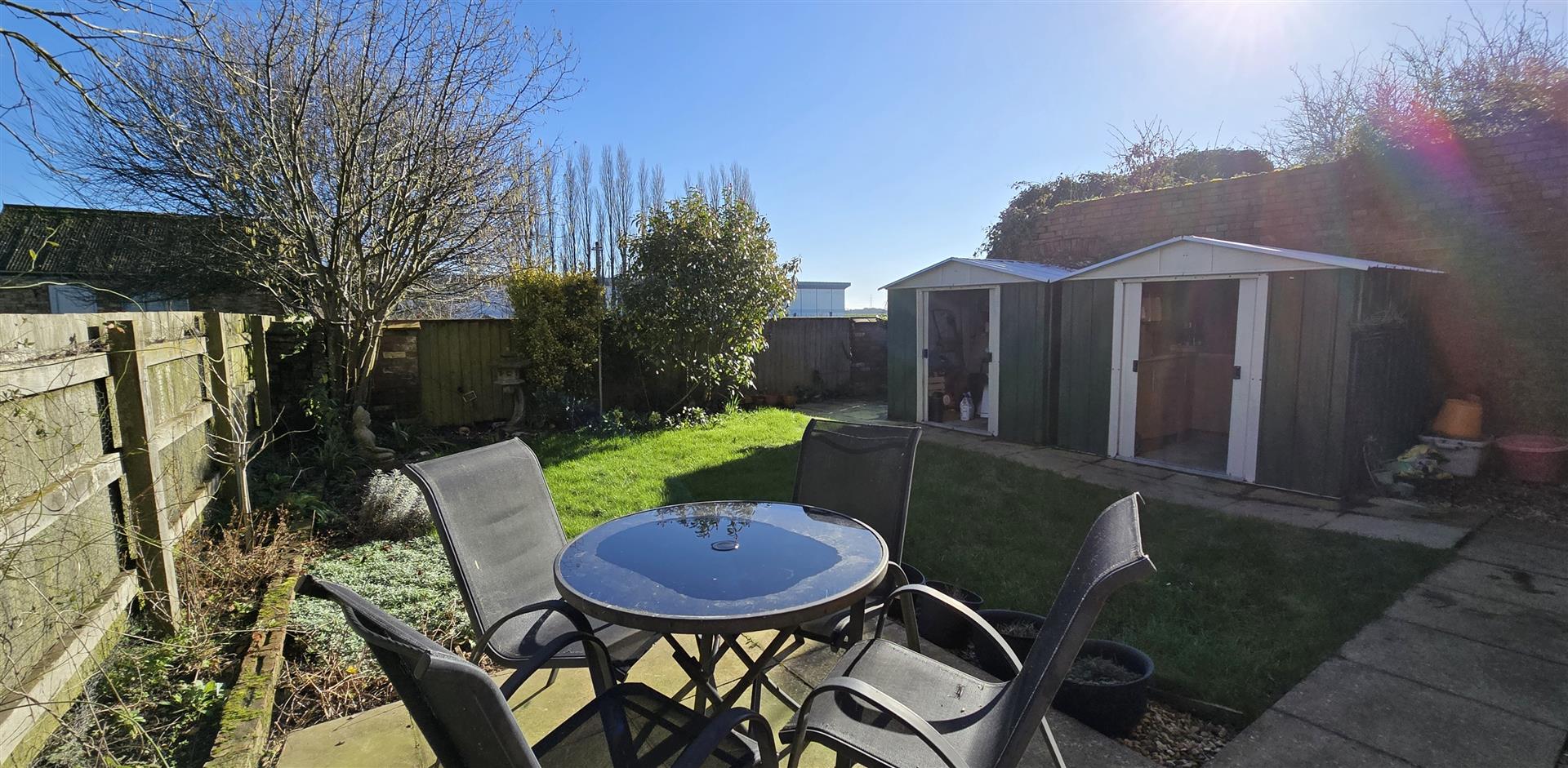 Externally, to the front of the property is a fully-enclosed lawned garden with a large summer house, ideal for relaxing or even use as a playhouse, whilst to the side of the property is a further lawned garden with borders and a patio over which an electric blind extends; an ideal spot to position outdoor furniture on which to relax and enjoy the field views. The side garden benefits from two metal storage sheds. To the rear of the property is off-road parking for 2 vehicles.