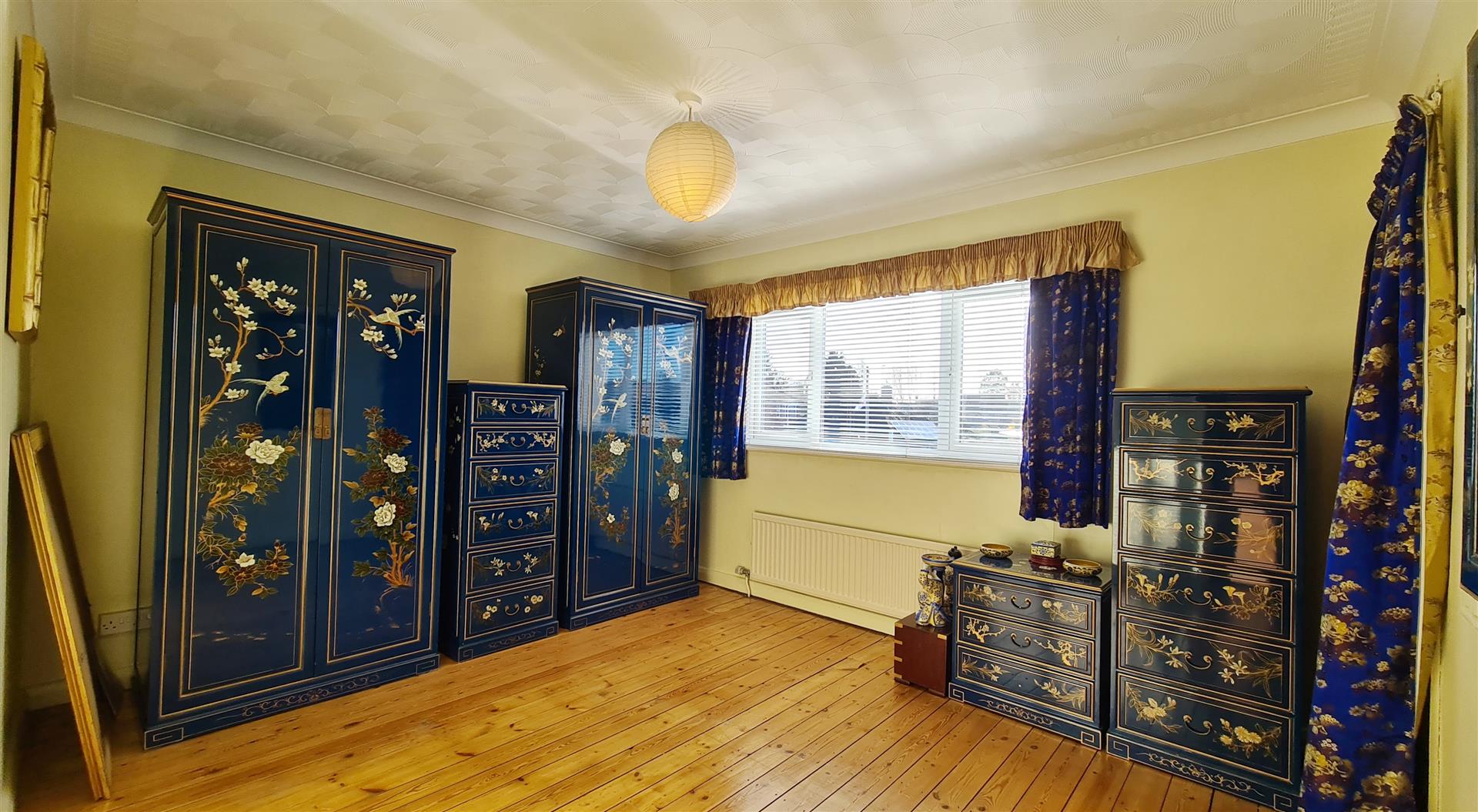 Coved and textured ceiling. uPVC double-glazed window to front. Built-in single wardrobe. Cupboard with loft access. Power points. Radiator. Hardwood flooring.