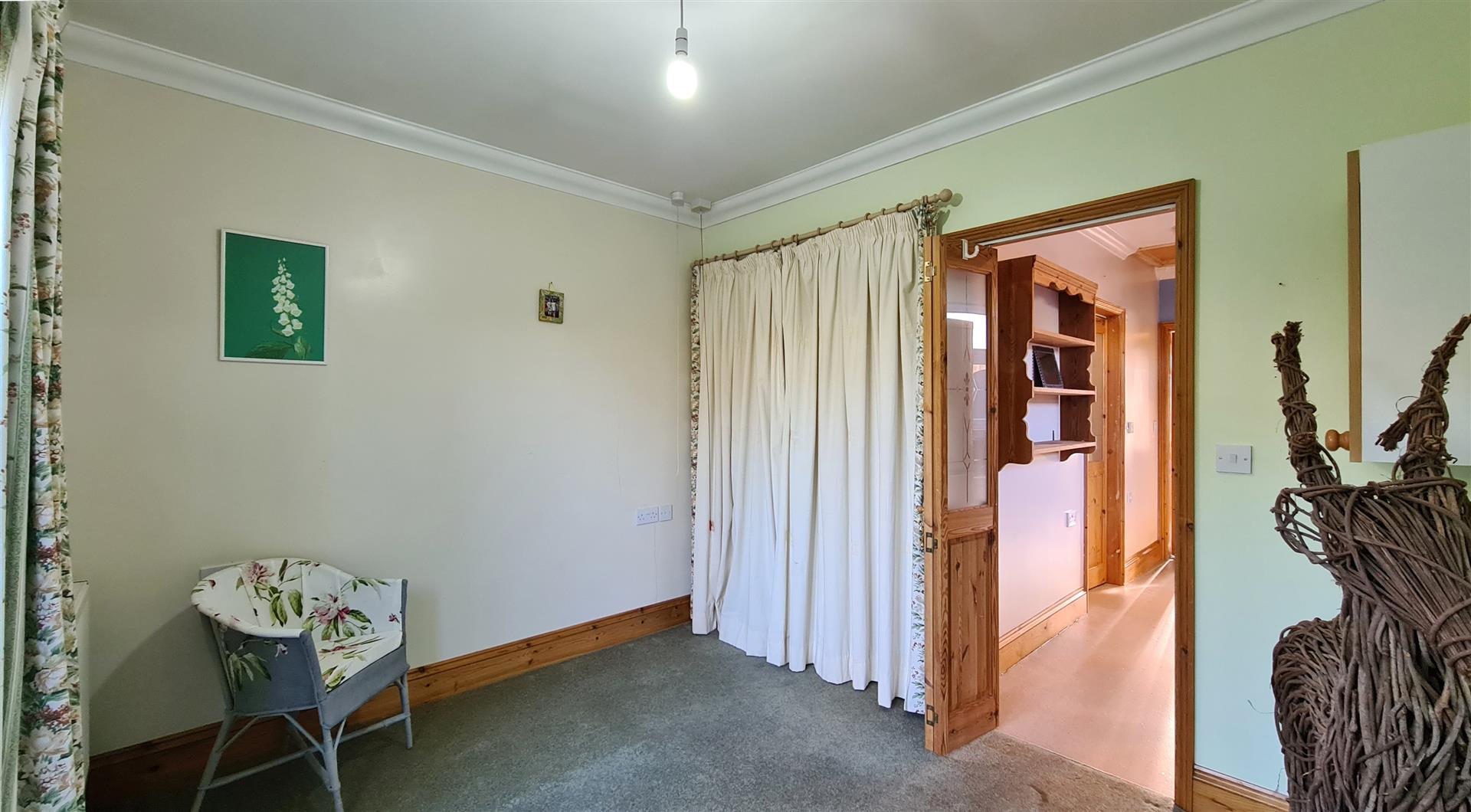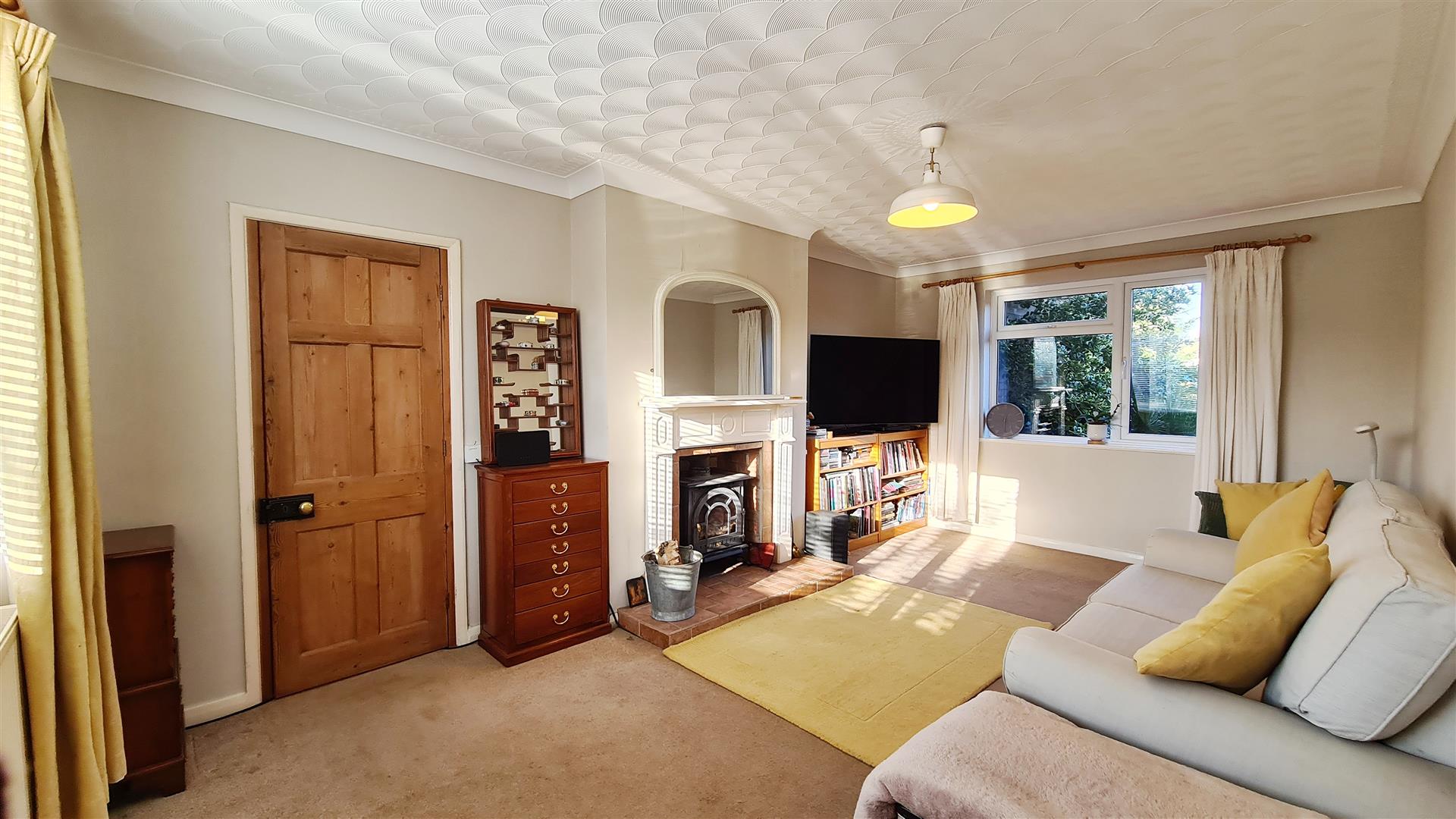 Coved and textured ceiling. Double aspect uPVC double-glazed to front and rear. Log burner on tiled hearth with wood surround. Power points. TV aerial socket. Radiator.