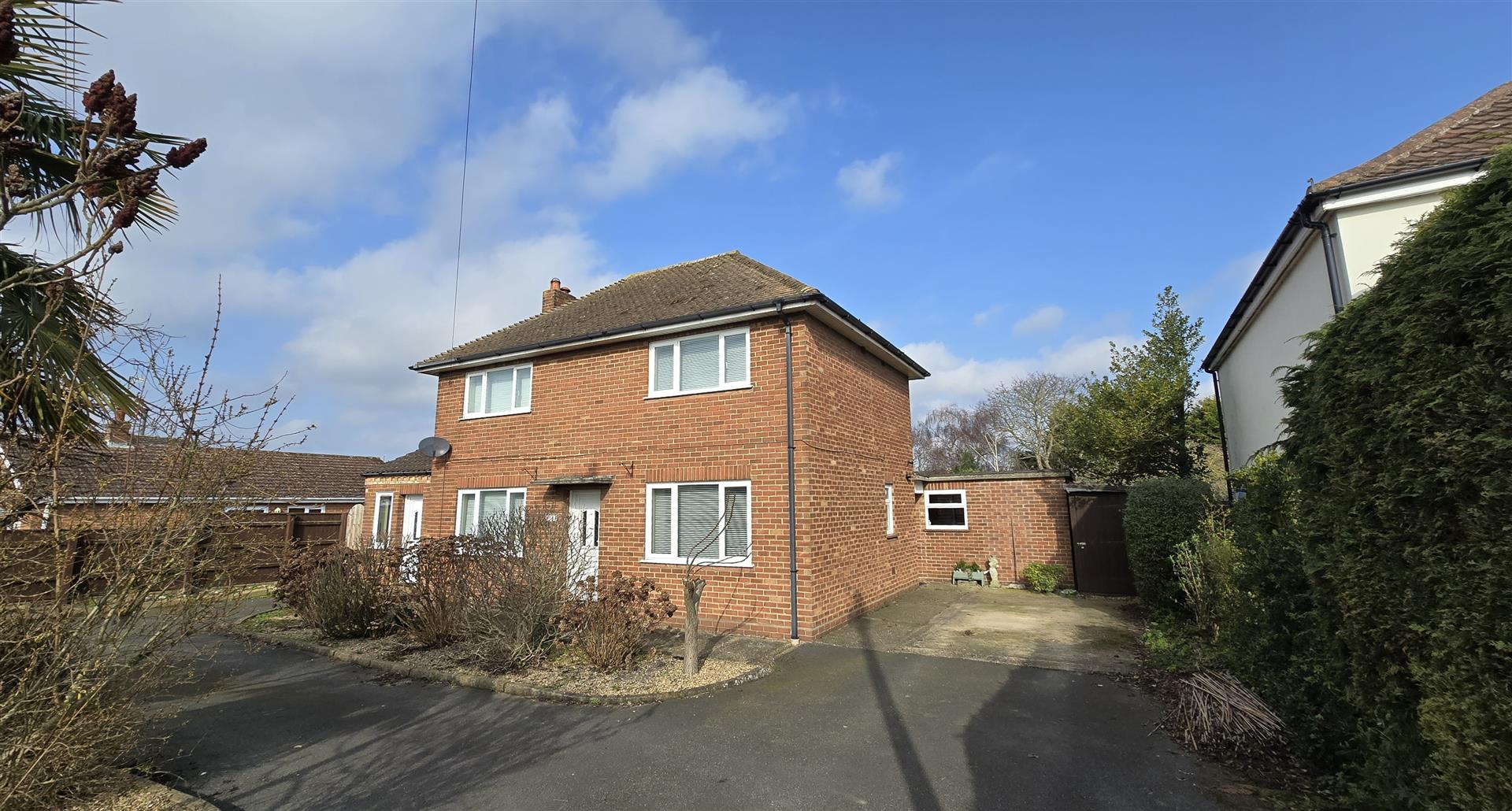 To the front of the property is a generous in-and-out driveway, surrounded by decorative flowerbeds. Off-road parking for multiple vehicles, including motorhomes or caravans. Access to a large storage shed (5.47 x 1.68) providing ample storage. A pedestrian gate to the side provides convenient access to the rear garden.