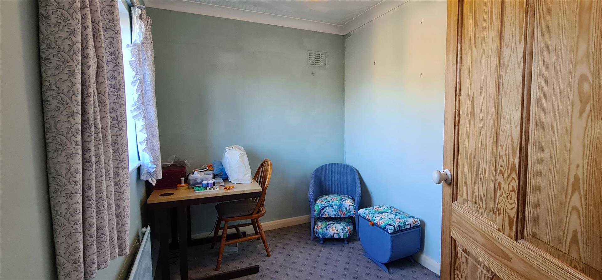 Coved and textured ceiling. uPVC double-glazed window to rear. Cupboard with shelf storage. Radiator. Power points.