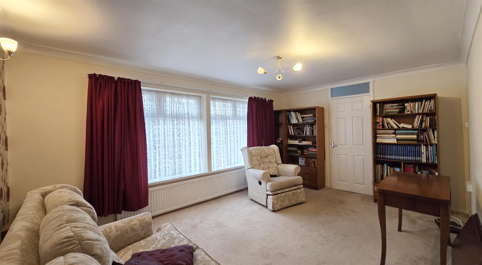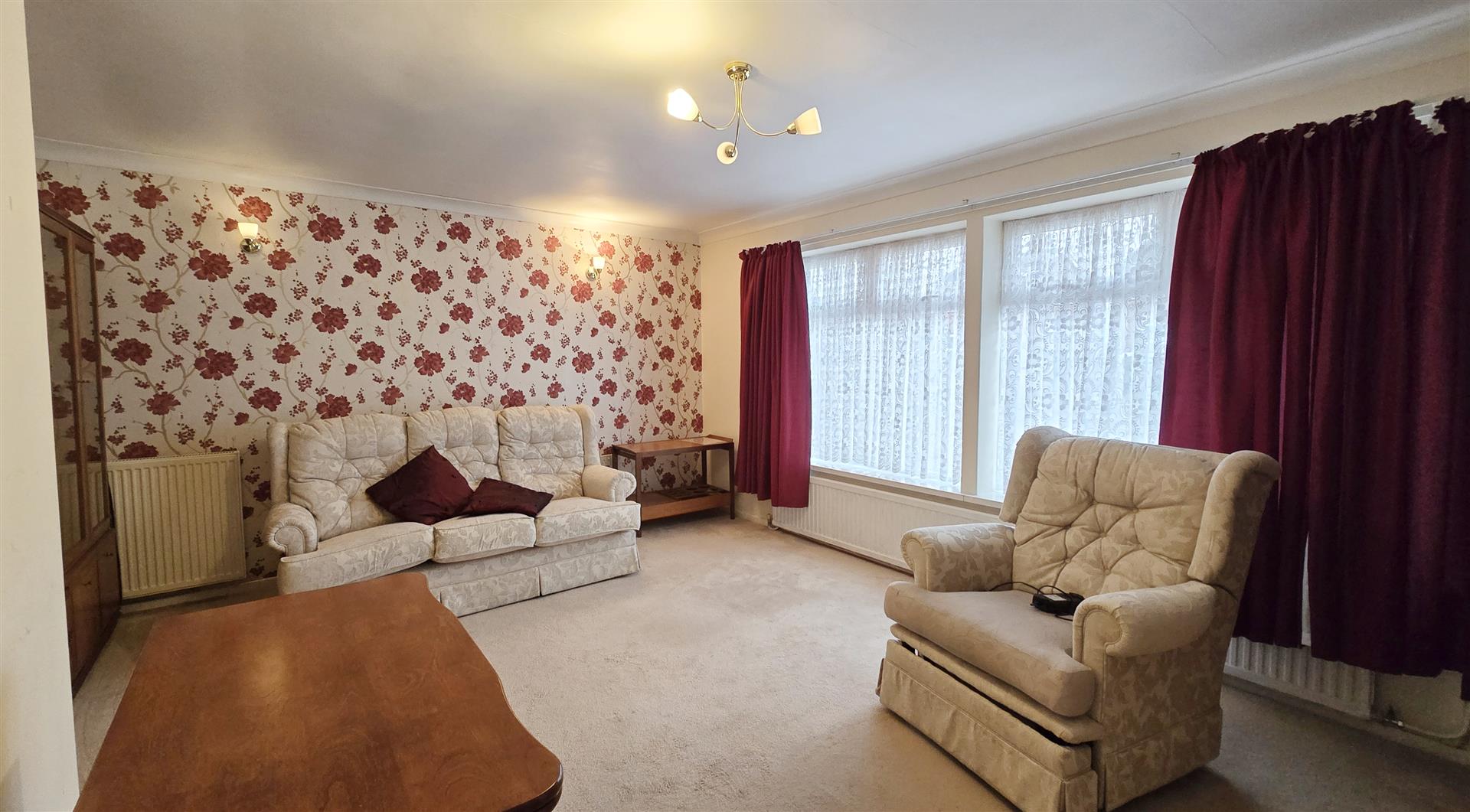 Offered for sale with no forward chain, this two-bedroom detached bungalow enjoys a semi-rural location while remaining close to local amenities, making it ideal for those seeking convenient, single-storey living. The property features a generous lounge, a fully fitted kitchen, and two double bedrooms served by the family bathroom.