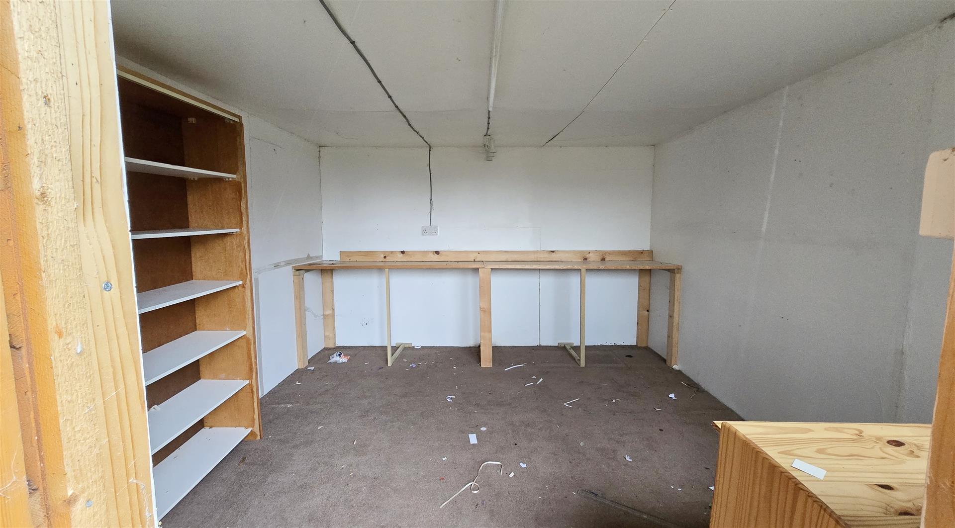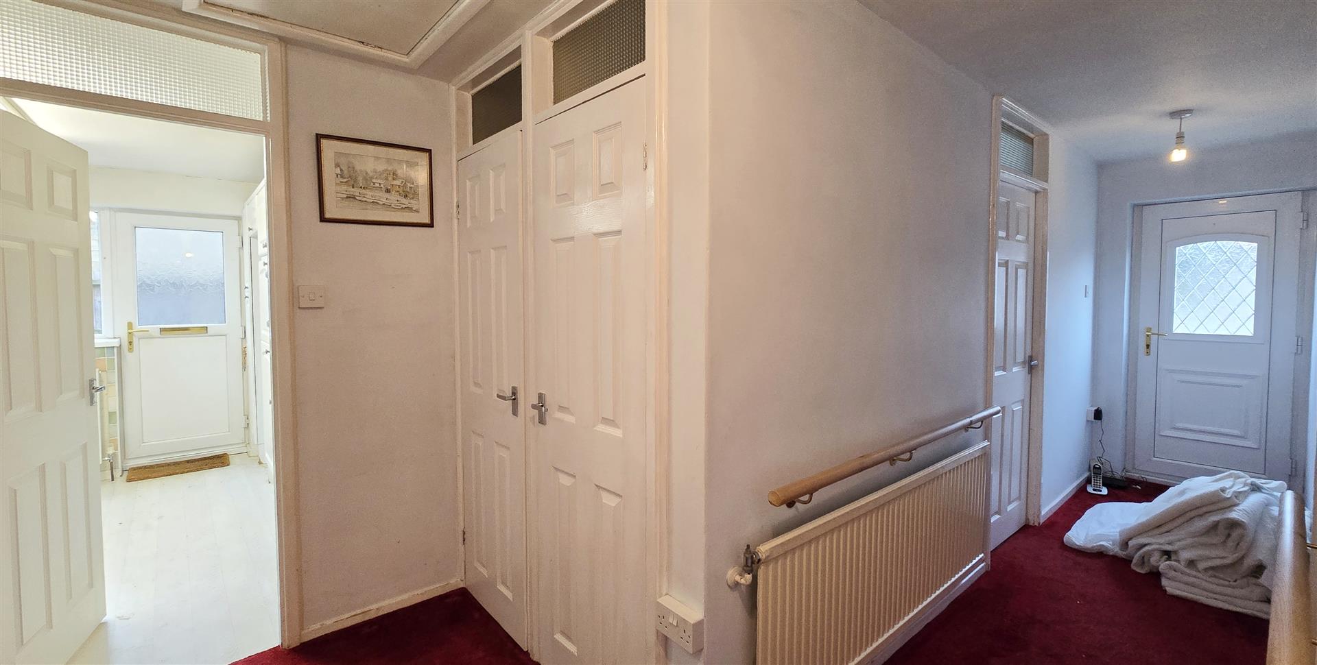 Part uPVC part double-glazed door to front. Loft access. 2 x cupboards, one housing hot water cylinder. Power points. Radiator.