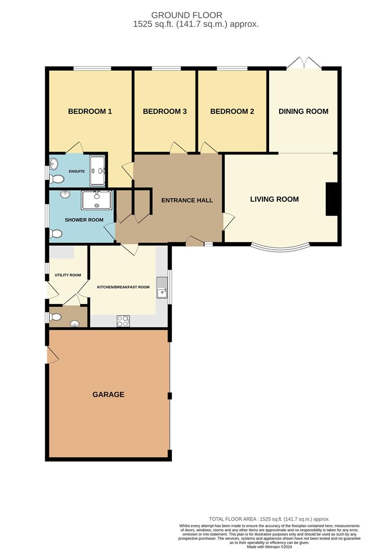 A superb 3-bedroom, executive-style bungalow sitting on a very generous plot (just under ¼ acre), set well back from the kerbside and within easy walking distance of the town centre. This extremely spacious bungalow has a super-sized fitted kitchen with a utility room and separate cloakroom off, and an L-shaped living / dining room with patio doors to the garden. There are 3 double bedrooms with a contemporary en-suite shower to the master bedroom and a further large, modern family sized bathroom. The bungalow sits centrally on its plot with neat lawns, a summerhouse and field views. To the front is a large driveway providing off-road parking for several vehicles leading to the integral double garage.