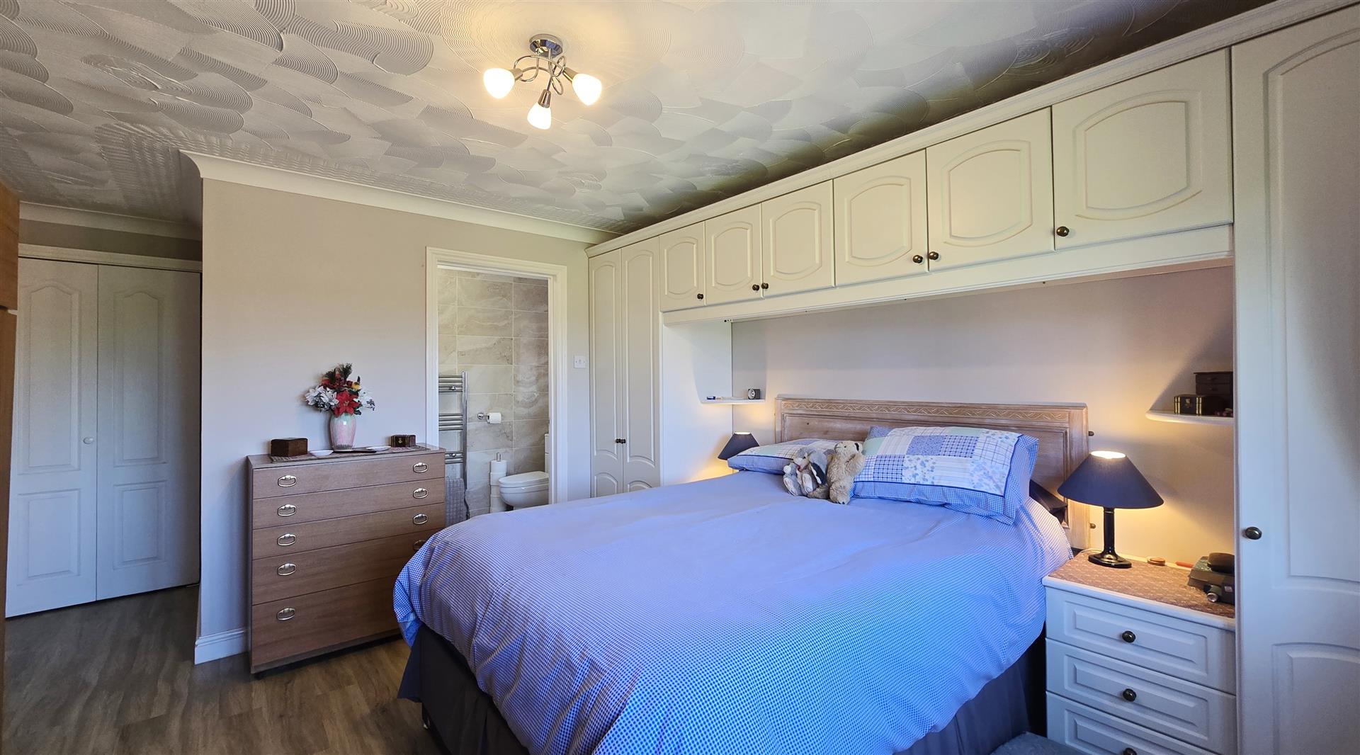 Coved and textured ceiling. uPVC double-glazed window to rear. Range of wardrobes with hanging rails and storage shelving with over-bed storage. Shirt cupboard with bi-fold doors. Radiator. Power points. Newly laid "Karndean style" flooring