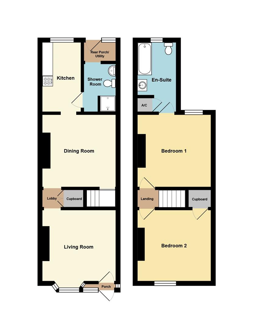 uPVC double-glazed door to the front. uPVC double-glazed windows to the front and side. Wooden single-glazed door to the living room. Linoleum flooring.