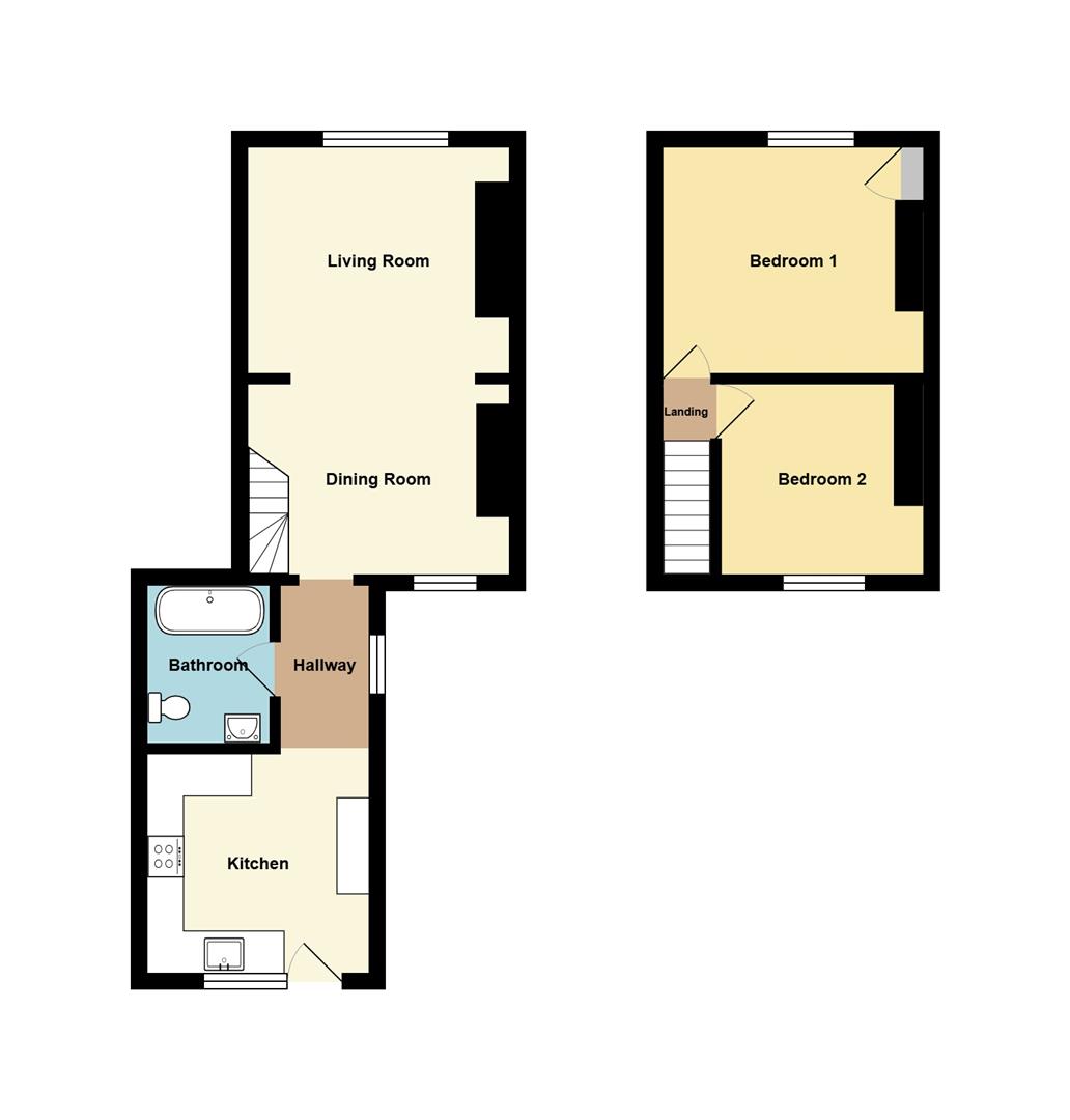 Sitting on a 1/4 acre plot STMS, this well-presented mid-terrace property has been fully refurbished throughout and is ready to move straight into. The accommodation includes a newly fitted modern kitchen, a renovated bathroom, a good-sized living/dining room, and two bedrooms. New flooring has been laid throughout the home, adding to the fresh and updated feel.