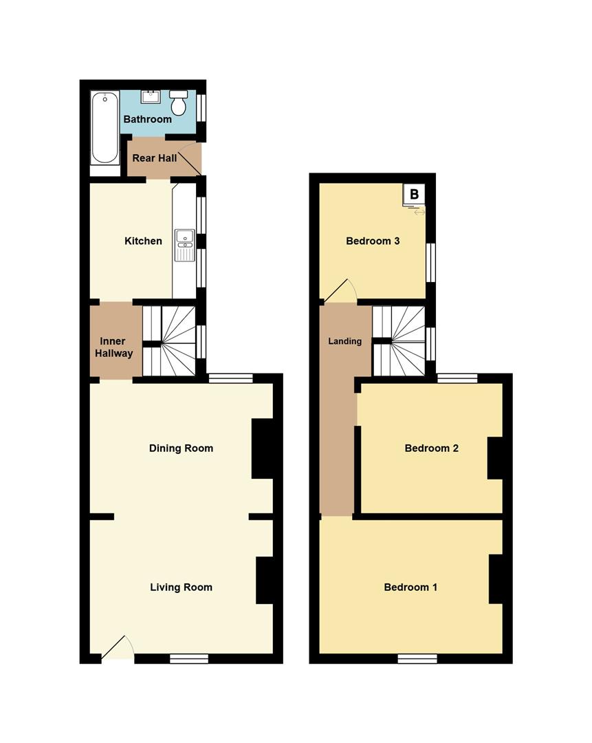 With an under-stair storage area with a uPVC double-glazed window to the side. Stairs to first floor.