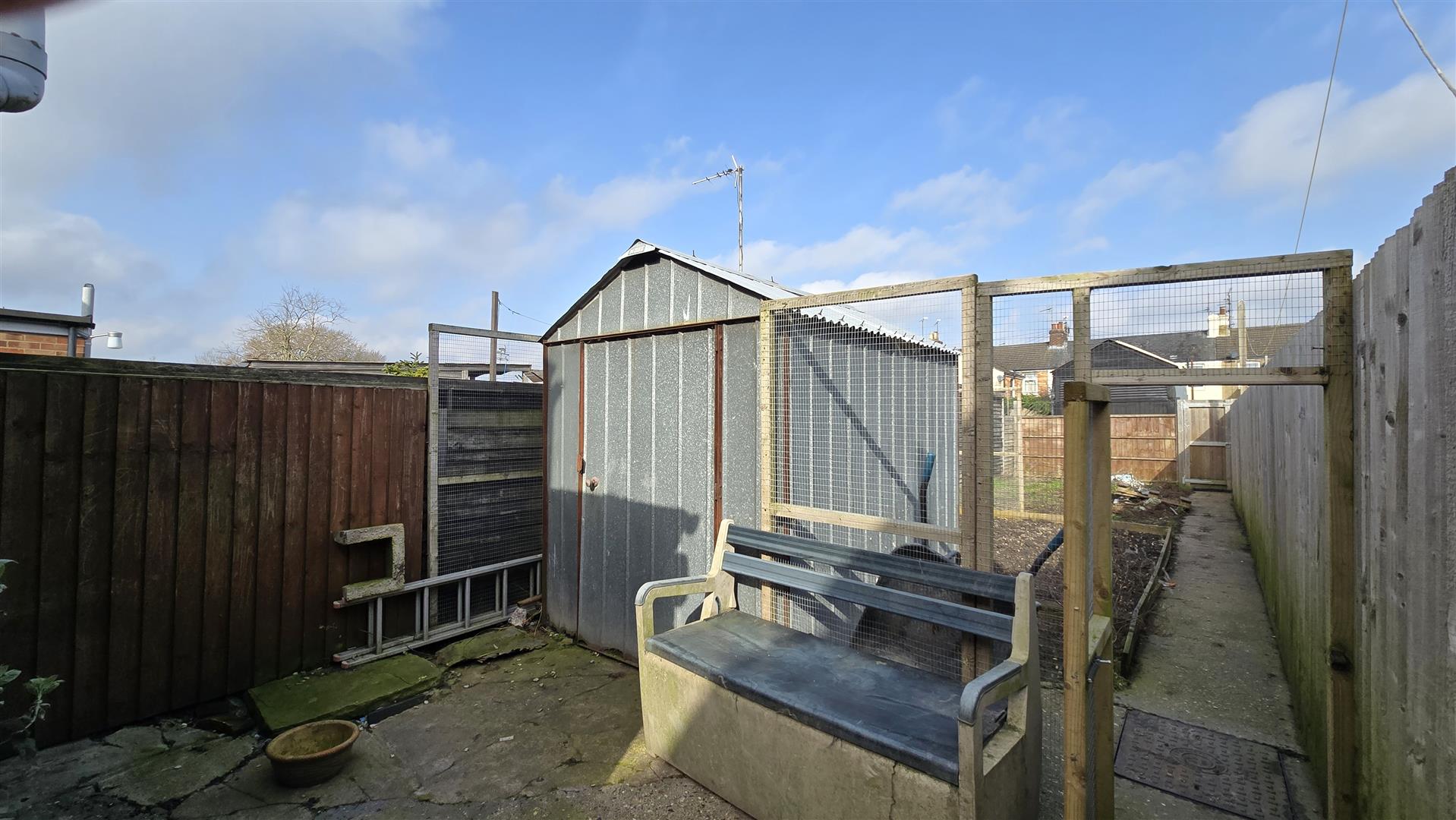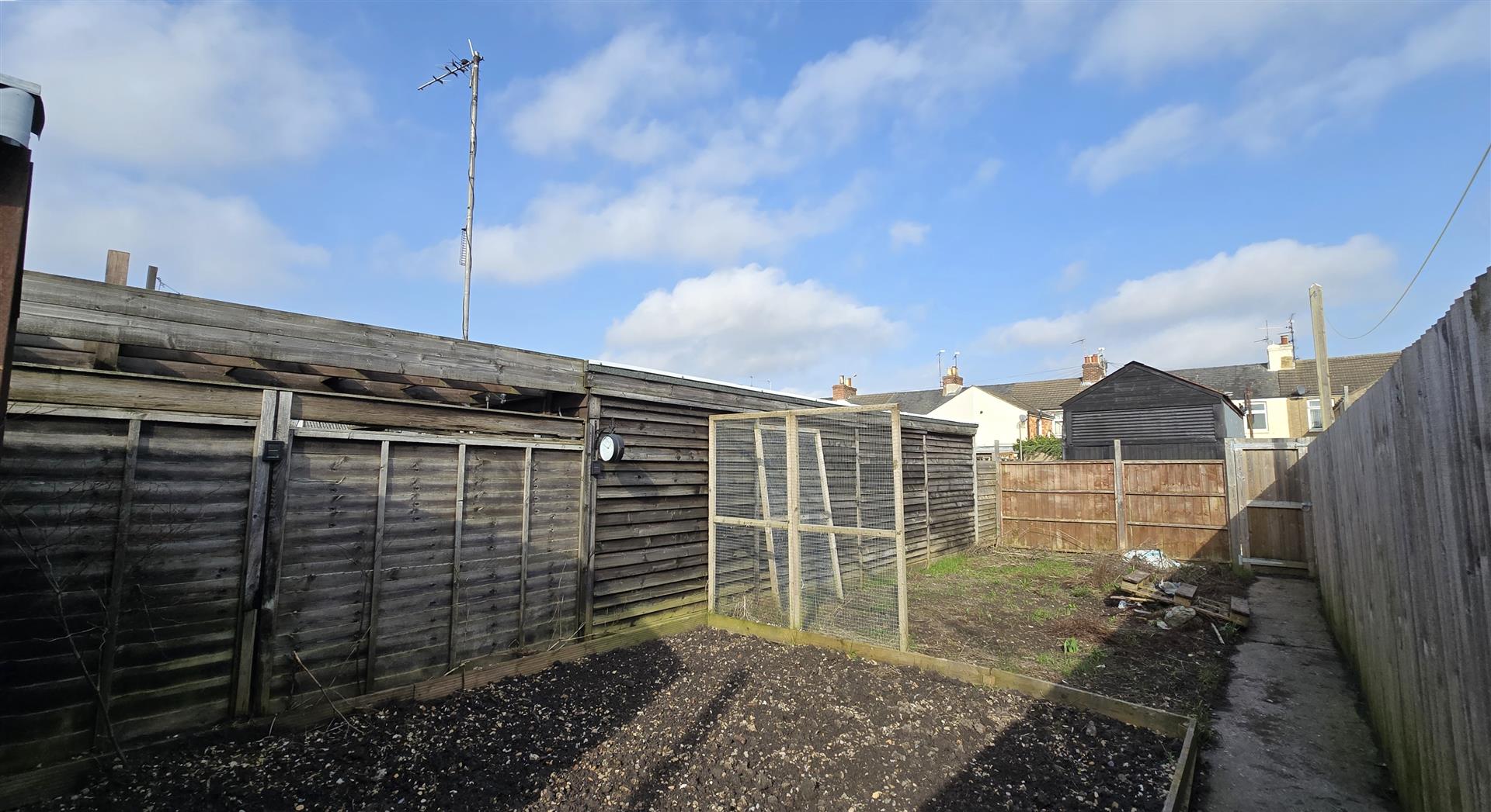 To the rear of the property is a garden fully enclosed with fencing, with a pedestrian access gate. It has an area of hardstanding, but is otherwise laid to soil. It benefits from a metal storage shed, an outside tap, and outside light.