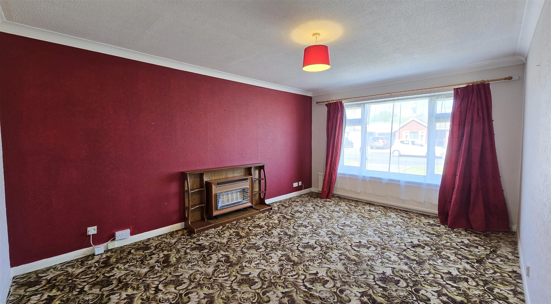 Coved and textured ceiling. Ceiling light pendant. uPVC double-glazed window to the front. Gas fire set in a wooden surround comprising a hearth, mantle and display shelving. 2 x radiators. 2 x double power-points. Single power-point. BT point. TV point. Carpet flooring.