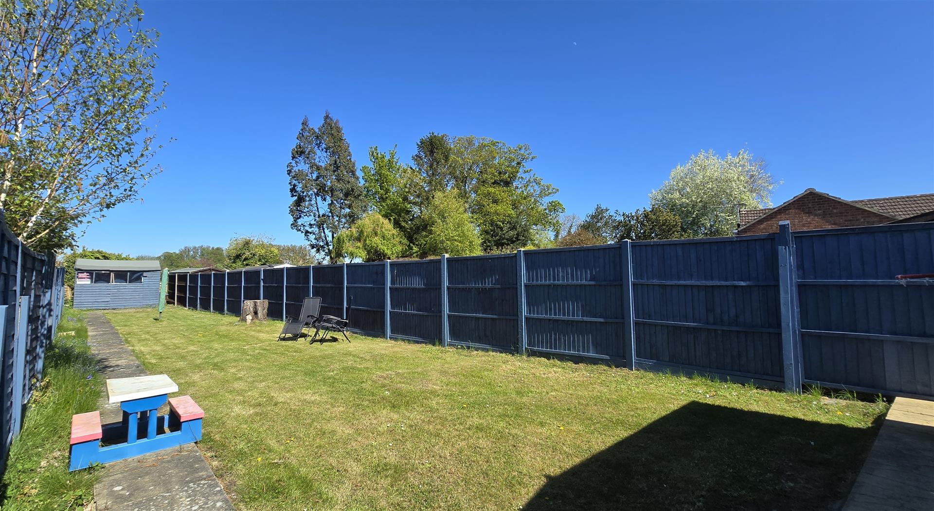 Outside, to the front of the property is a gravelled driveway, providing off-road parking for 1 vehicle. A pedestrian gate provides access to the generous rear garden. The garden is mostly laid to lawn, with a footpath leading to a wooden storage shed, beyond which are field views. There is a large patio on which to position outdoor furniture. The garden boasts a super-sized wooden cabin equipped with power, lighting, and wall-hung heaters, so could be utilised as an office space, play room or hobby room for example.