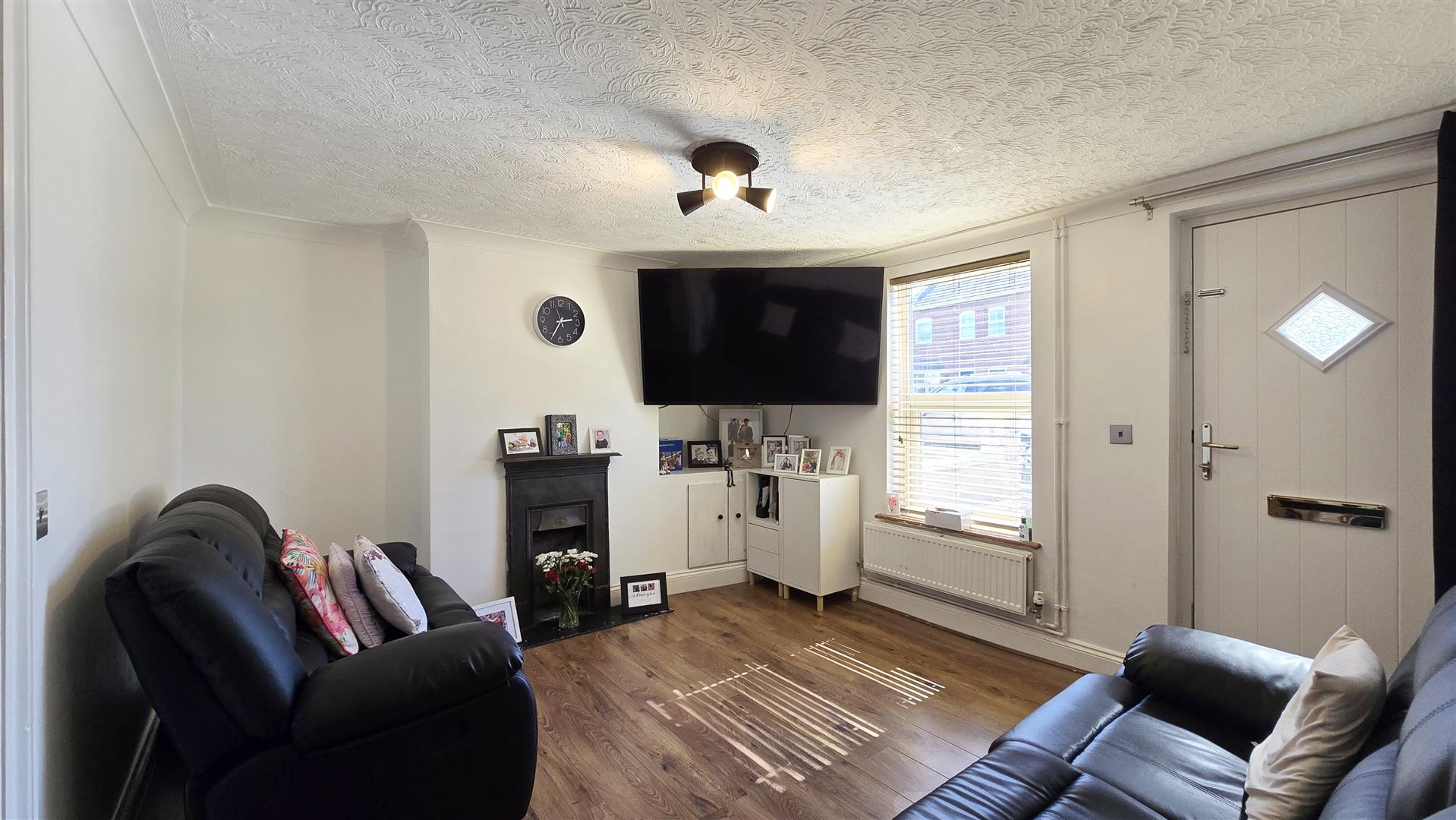 Coved and textured ceiling. uPVC door to the front. uPVC double-glazed window to the front. Fire place. Power-points. 2 x radiators. Wood-effect laminate flooring.