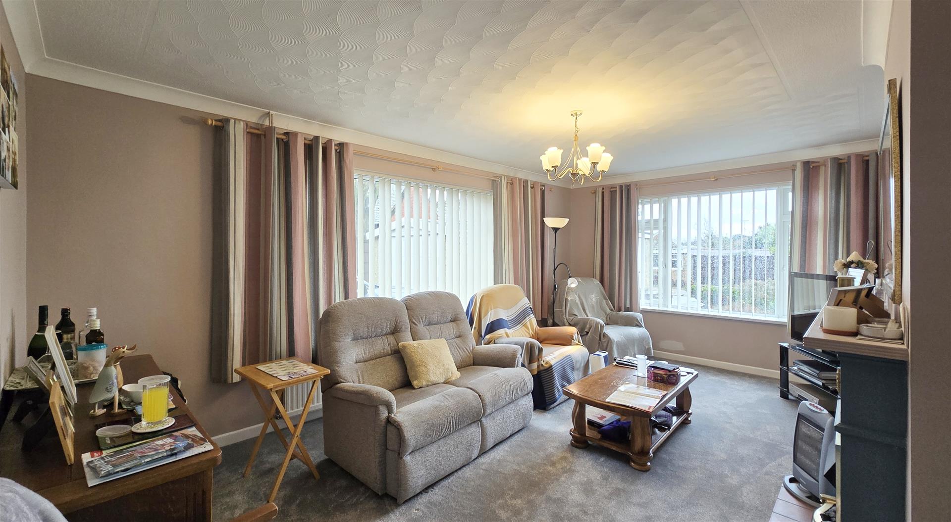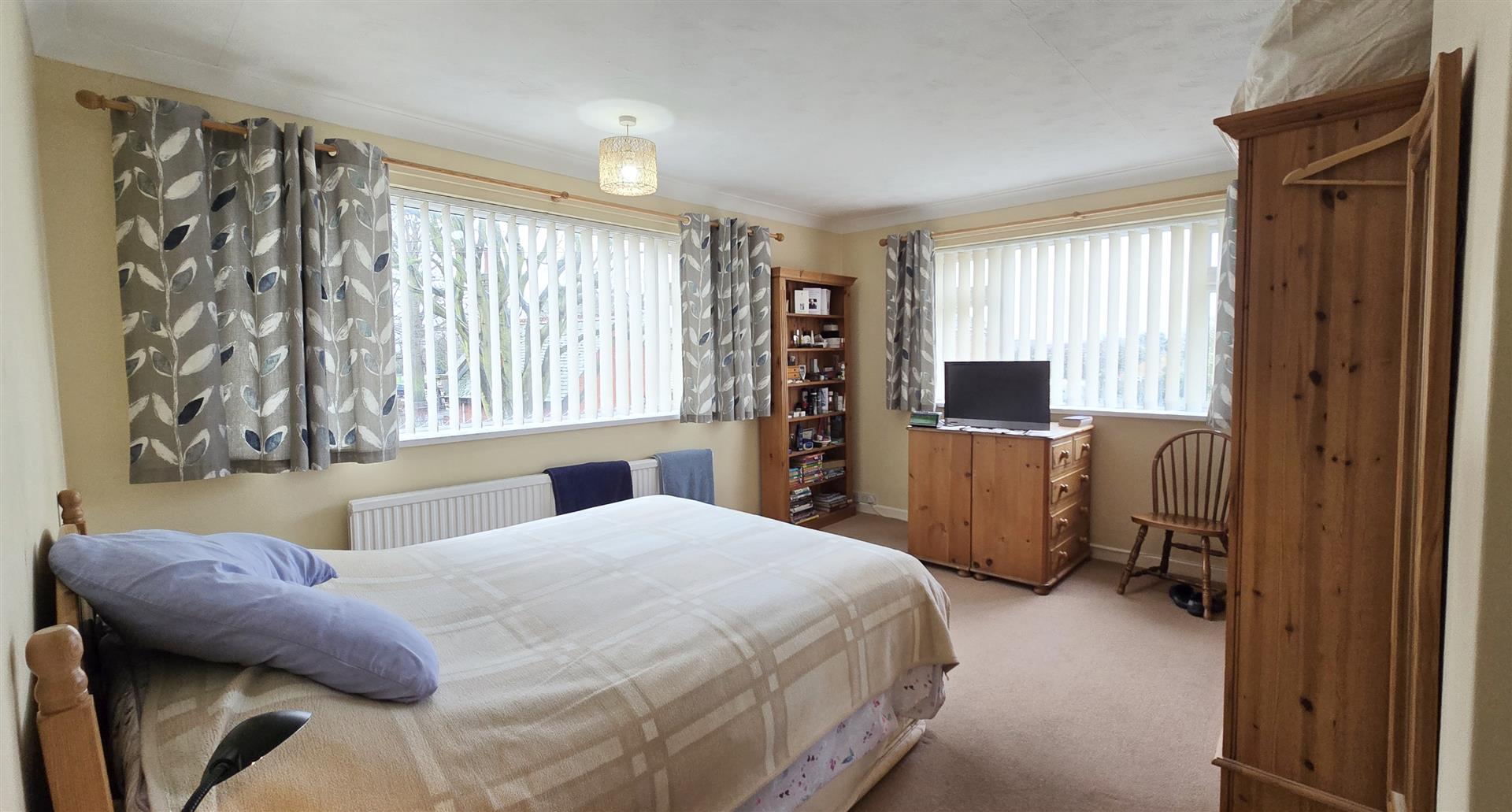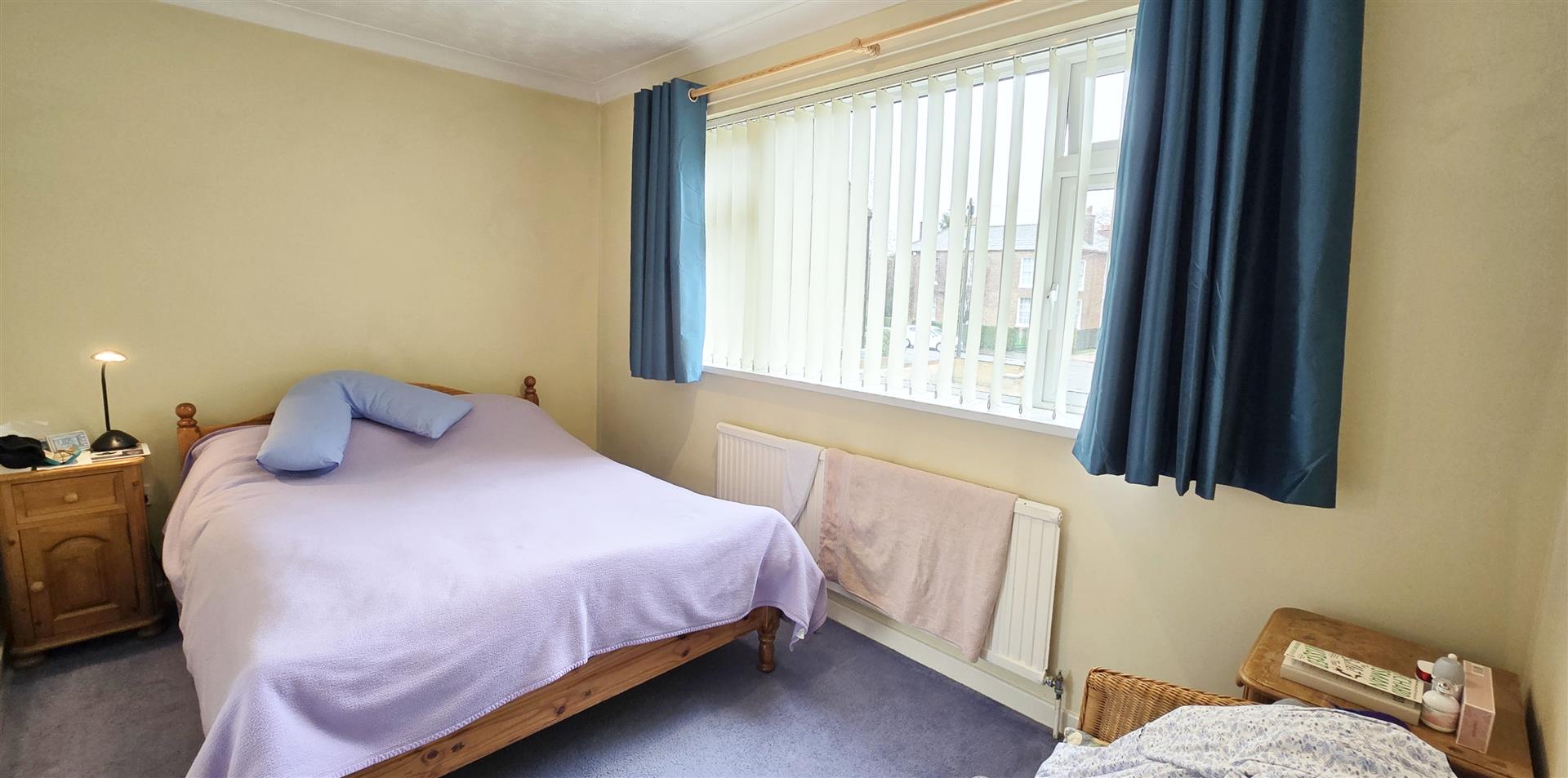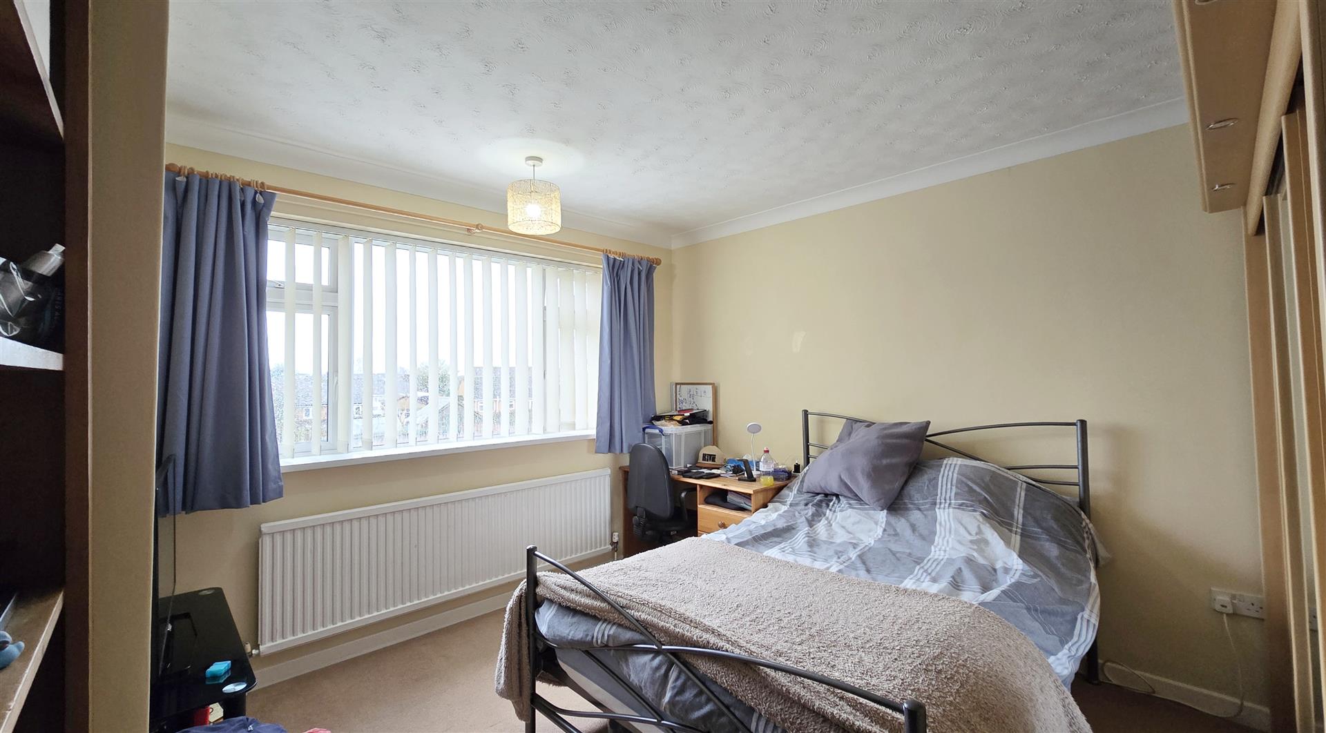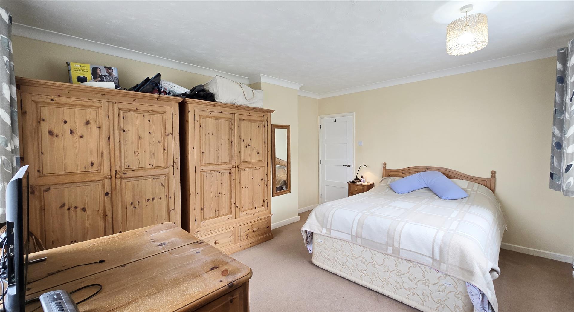 Coved and textured ceiling. Ceiling light pendant. uPVC double-glazed window to the front. uPVC double-glazed window to the side. Radiator. 2 x double power-points. TV point. BT point. Carpet flooring.
