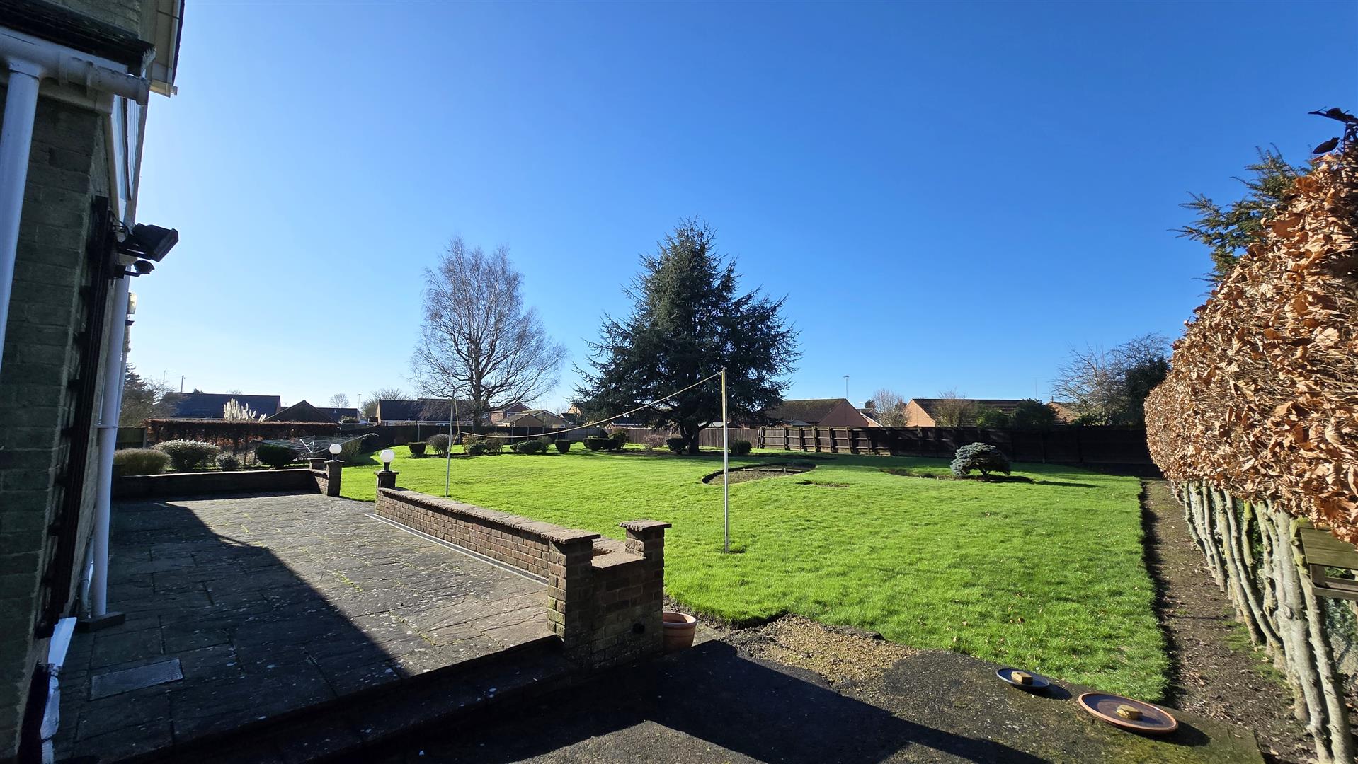 To the rear and side of the property is a substantial garden enclosed by a combination of fencing and hedging. Whether you are a gardening enthusiast, you want to try growing-your-own, or simply want space for children and furry friends to play, you will not be disappointed. It is mainly laid to lawn with scattered flower beds, some of which have established shrubs and bushes, and others where there is scope to add planting to your desire. A raised patio spans the width of the property, and benefits from outside lighting and an outside tap.