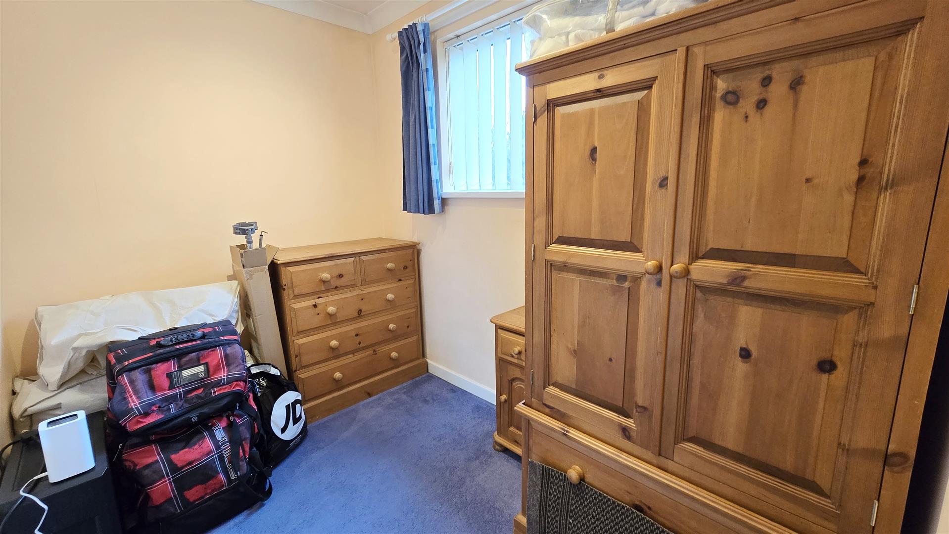 Coved and textured ceiling. Ceiling light pendant. uPVC double-glazed window to the side. Radiator. 2 x double power-points. Carpet flooring.