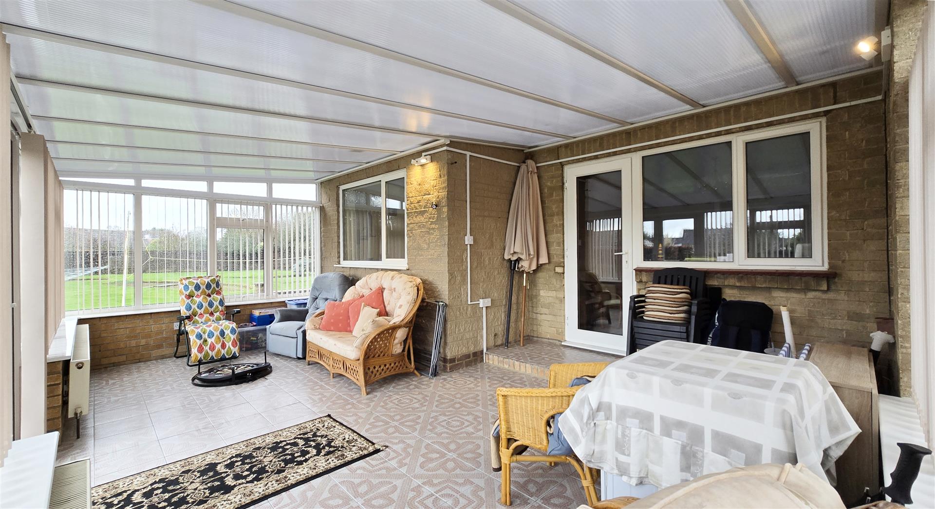 Part-brick, part uPBV double-glazed construction with uPVC double-glazed french doors to the side and a polycarbonate roof. 2 x wall lights. 2 x radiators. 2 x double power-points. BT point. Tile flooring.