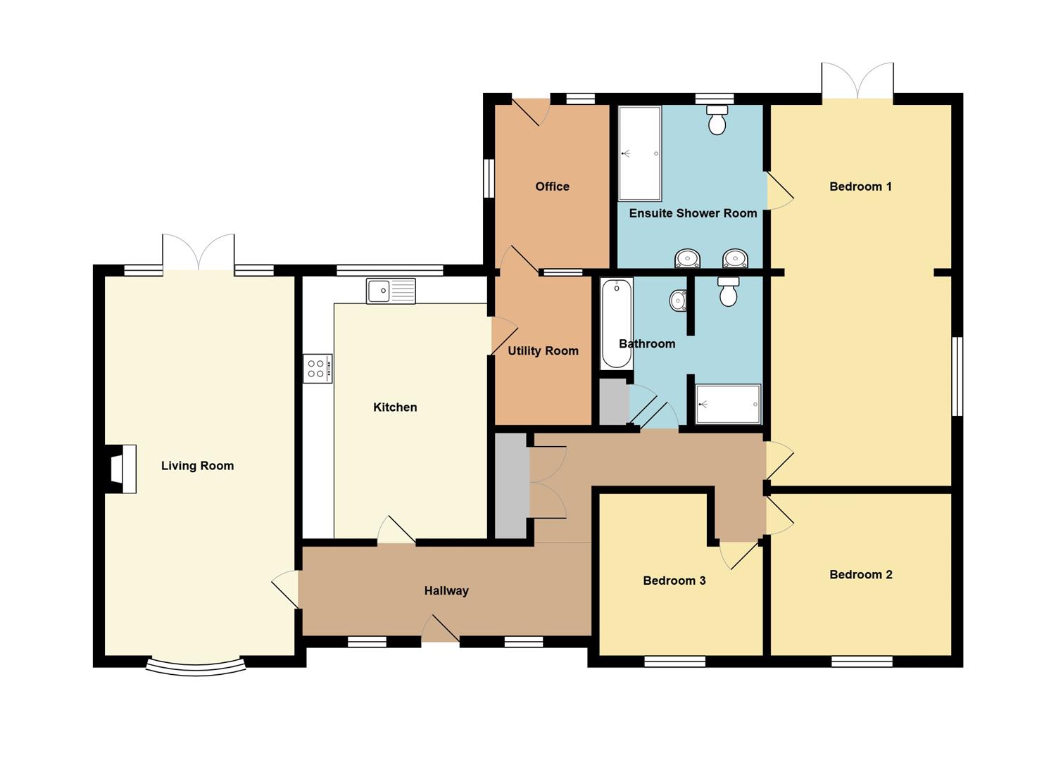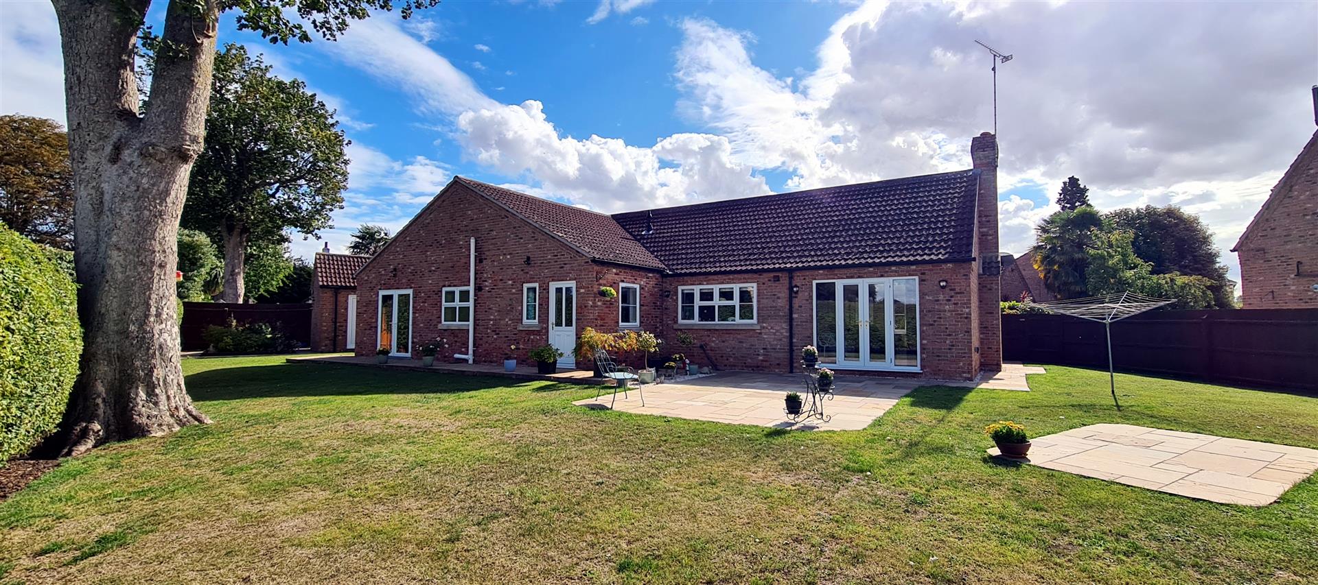 The bungalow boasts spacious accommodation throughout, comprising a generous living room with French doors opening onto the garden, a contemporary fitted kitchen/diner with integrated appliances and a separate utility room with an office area off, ideal for someone who works from home or likes to have a dedicated space in which to keep ontop of life admin. The super-sized master bedroom has a designated dressing area and boasts a contemporary shower room off, whilst the second king-size bedroom and third double bedroom are serviced by the family bathroom with its 4-piece suite.