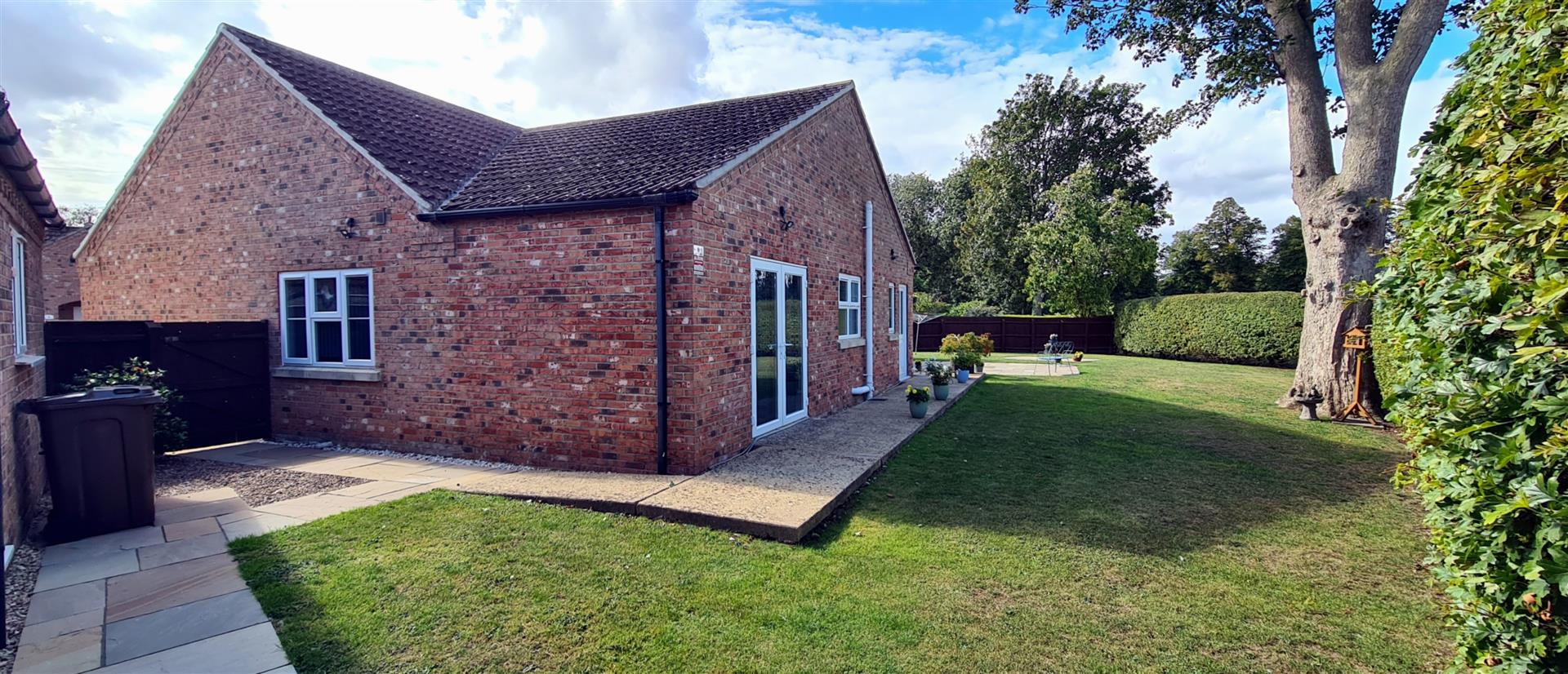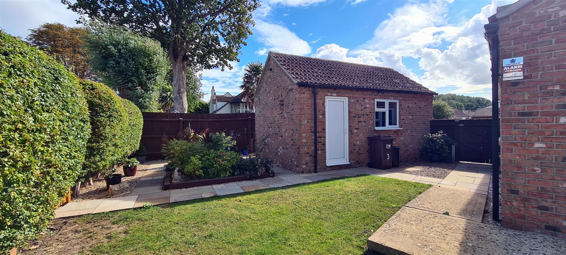 The front of the property is laid to lawn with a block-paved footpath. A block-paved driveway provides off-road parking for 3 cars, and leads to the detached single garage. There are low-maintenance decorative stone borders. The front of the bungalow benefits from outside lighting, and wooden pedestrian gates to each side provide access to the rear garden.