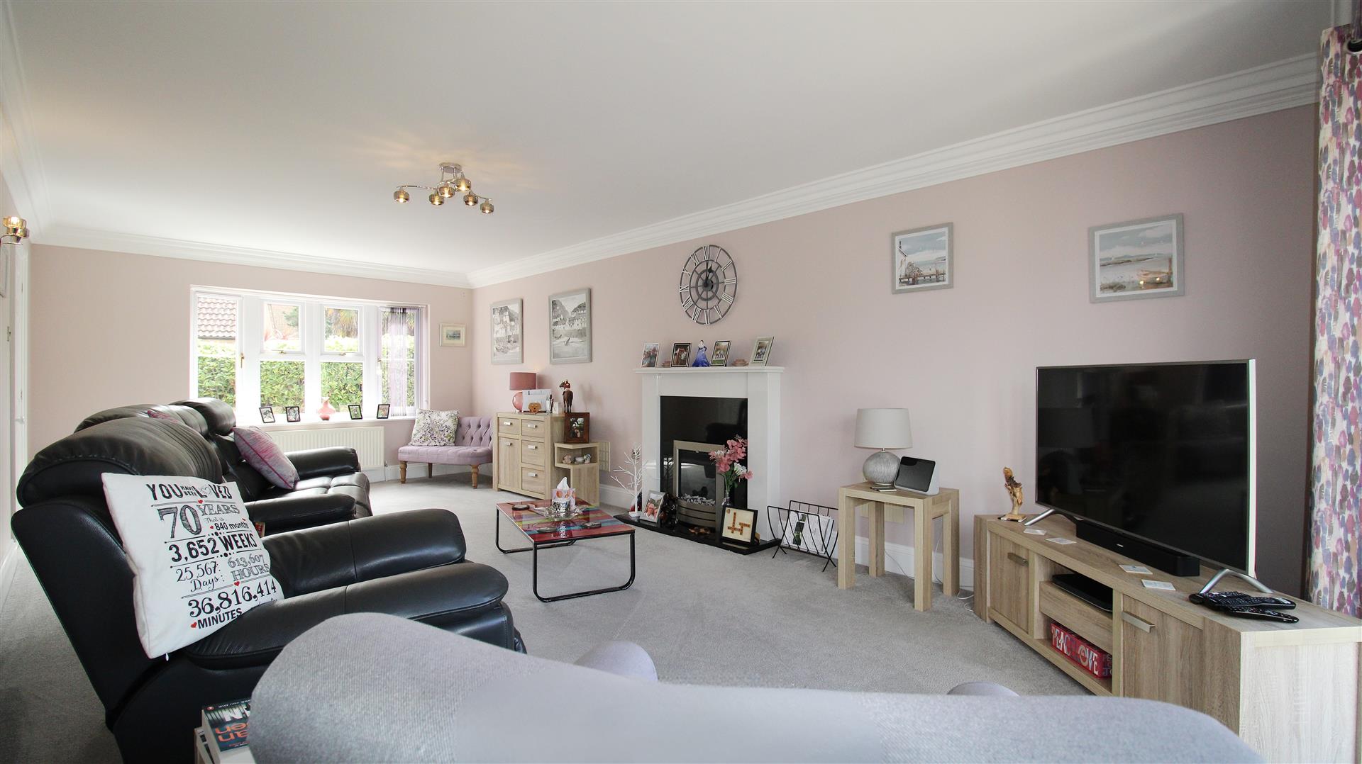 Coved ceiling. Ceiling light. uPVC double-glazed window to the front. uPVC double-glazed French doors to the rear. 2 x wall lights. Coal-effect electric fire with a marble hearth, surround and mantle. 2 x radiators. 3 x double power-points. TV point. Carpet flooring.