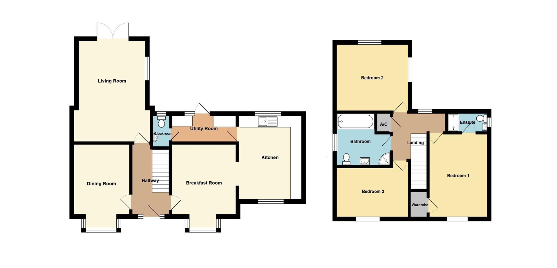 Step into a bright and welcoming hallway, leading to generous reception rooms ideal for entertaining or relaxing. The spacious living room features patio doors opening onto the garden patio, while the separate dining room and breakfast room provide further flexibility. A fully fitted kitchen includes integrated appliances, complemented by a practical utility room and a downstairs cloakroom.