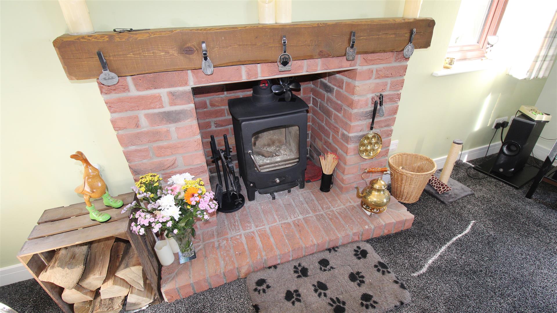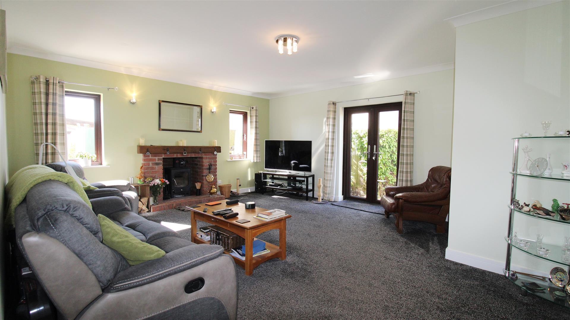 Coved ceiling. Ceiling light. uPVC double-glazed French doors to the side. 2 x uPVC double-glazed windows to the rear. CO2 detector. Multi-fuel burner set on a brick hearth with a brick surround and a wooden mantle over. Radiator. 3 x double power-points. TV point. Carpet flooring.