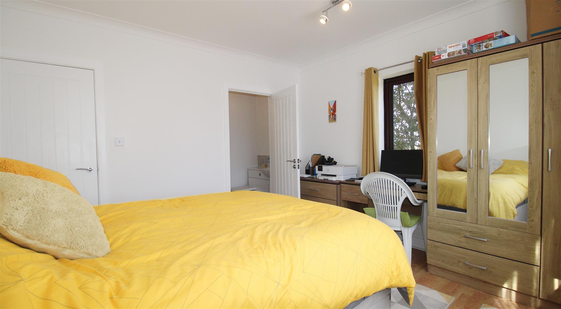 Coved ceiling. Ceiling light. uPVC double-glazed window to the front. Walk-in wardrobe (measuring approximately 2.94m x 1.12m) with internal ceiling light providing hanging space as well as accesses to 2 separate loft spaces. Radiator. 2 x double power-points. Carpet flooring.