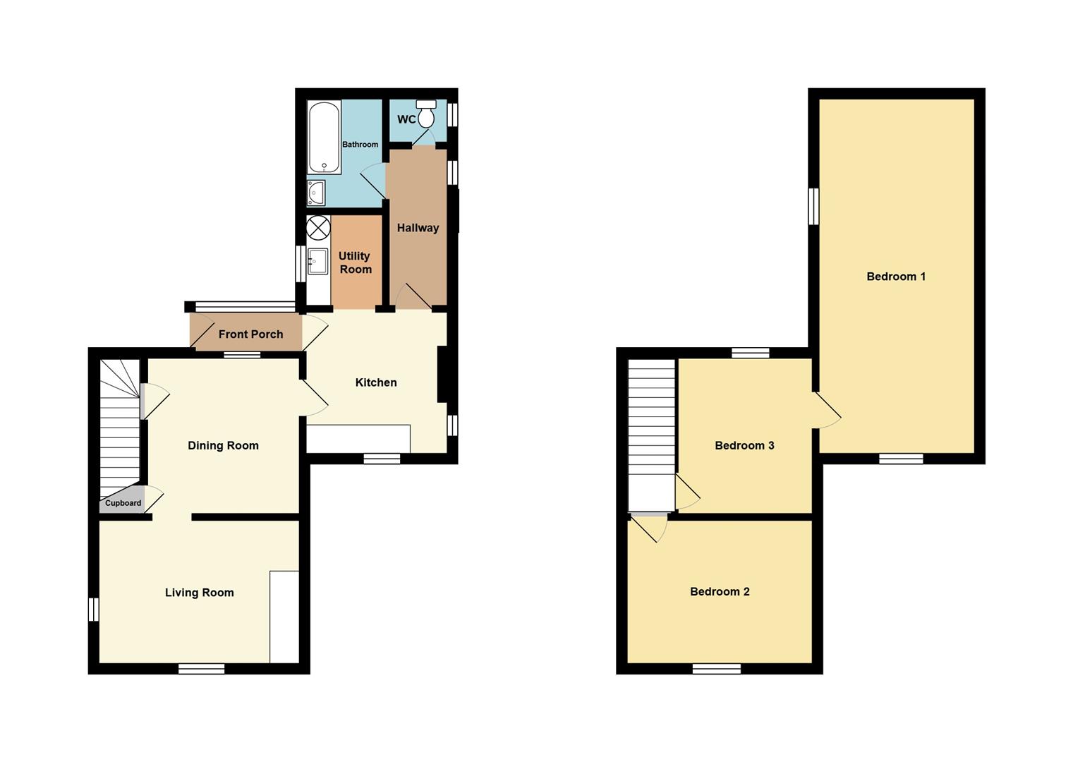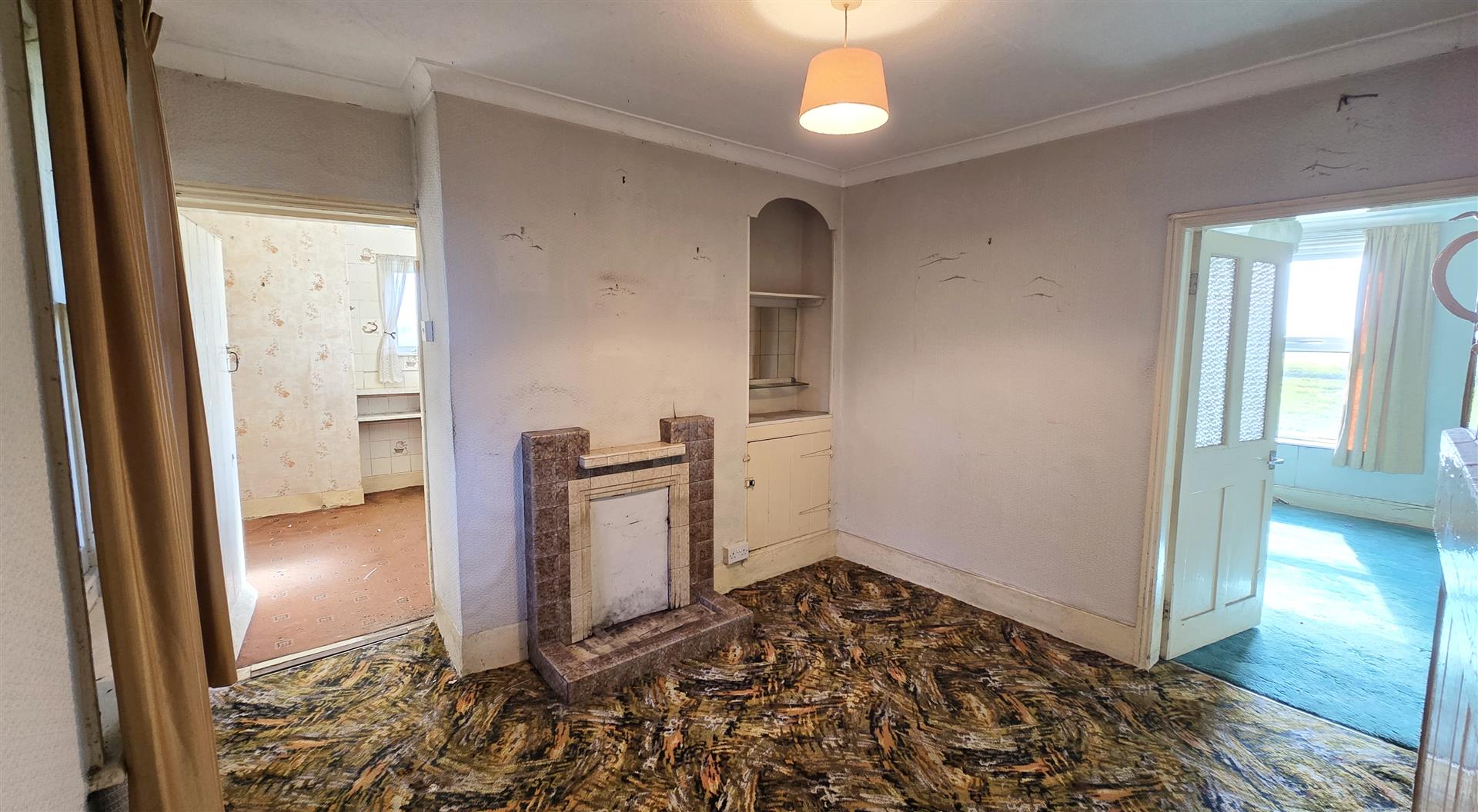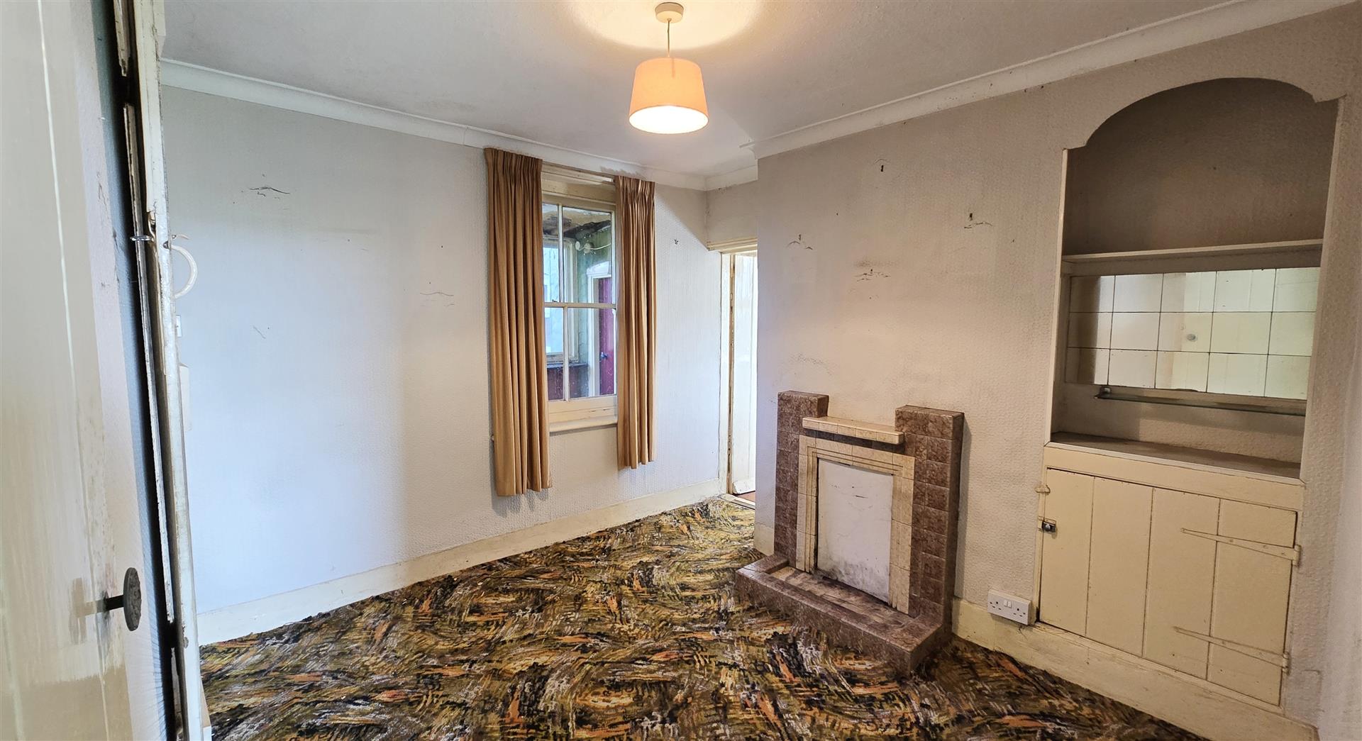 Wooden single-glazed sash window to front porch. Fireplace. Access to staircase and under-stairs cupboard. Power points.