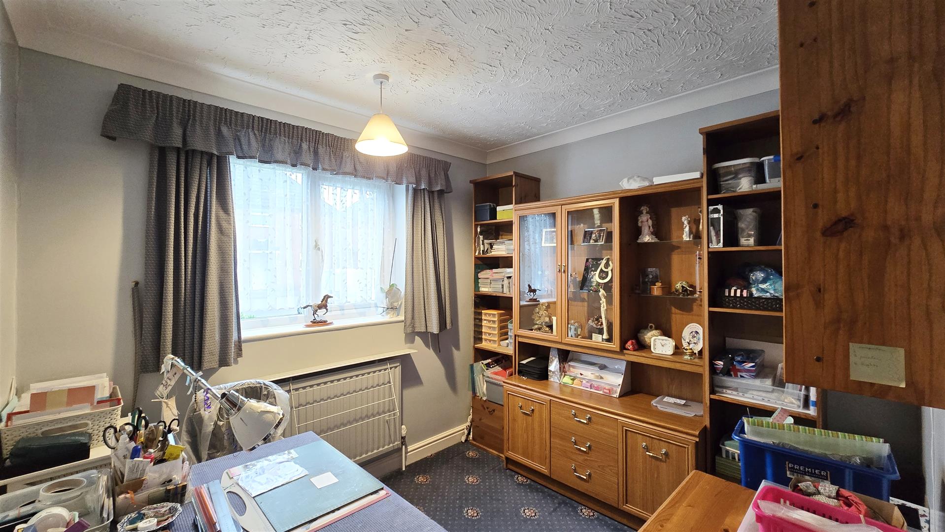 Coved and textured ceiling. uPVC double-glazed window to front. Power points. Radiator.