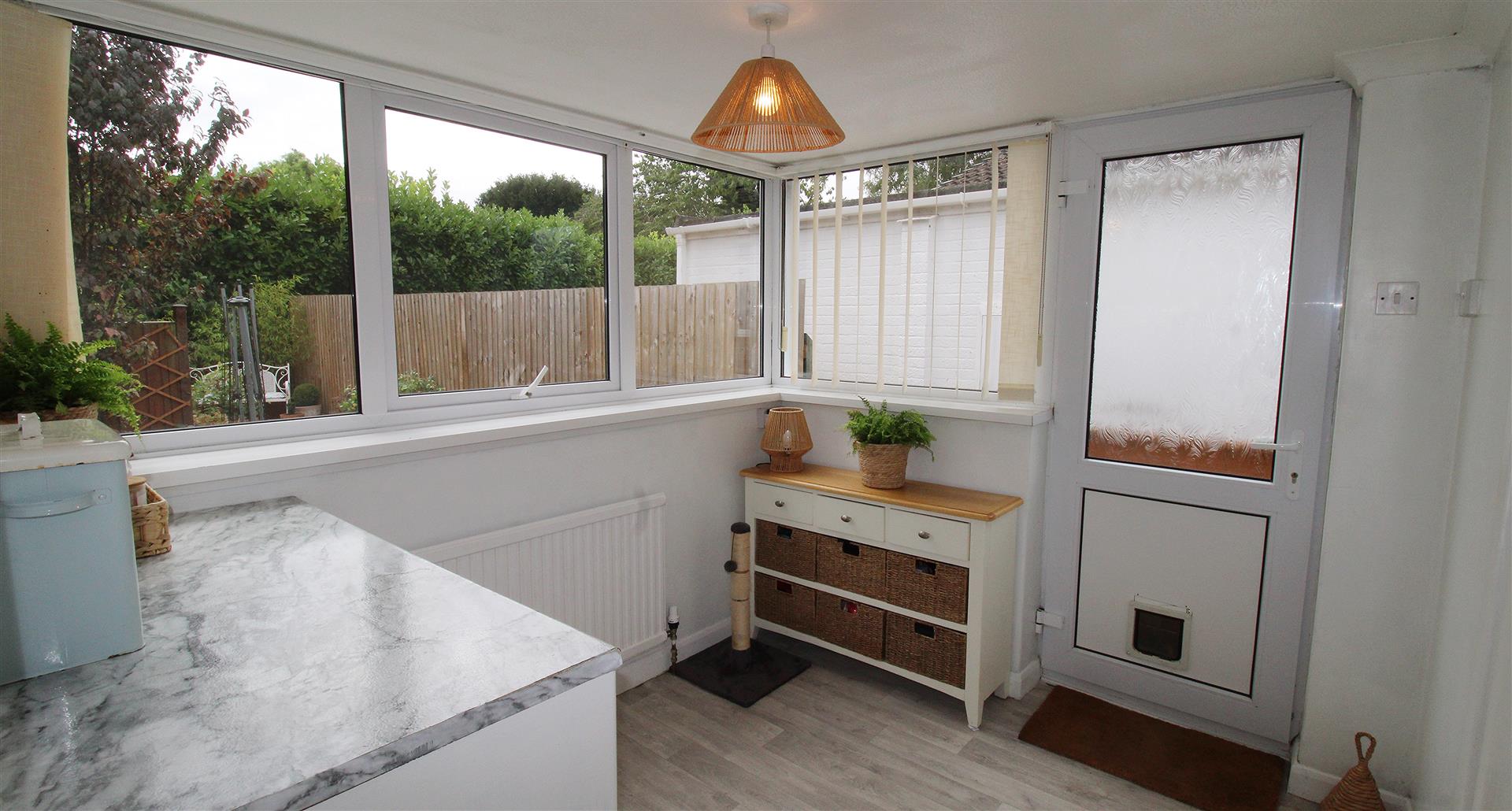 Coved, textured ceiling. Hatch providing access to the boarded loft. uPVC double-glazed door with a matching uPVC double-glazed side panel. Cupboard measuring approximately 0.89m x 0.89m housing the 'Worcester' combi-boiler. Radiator. Double power-point. BT point. LVT flooring.